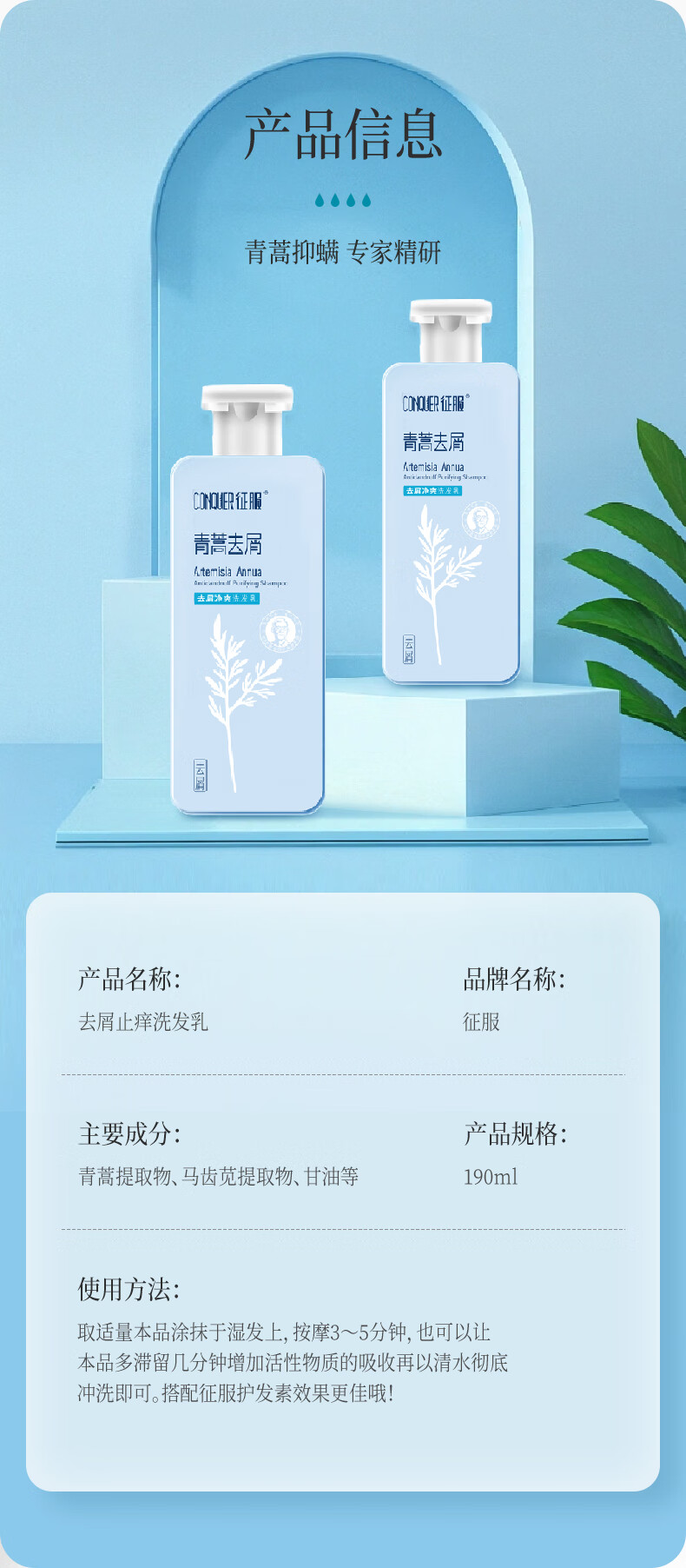 征服 去屑净爽 190ml 洗发水 190ml 蓝色(单位:瓶)