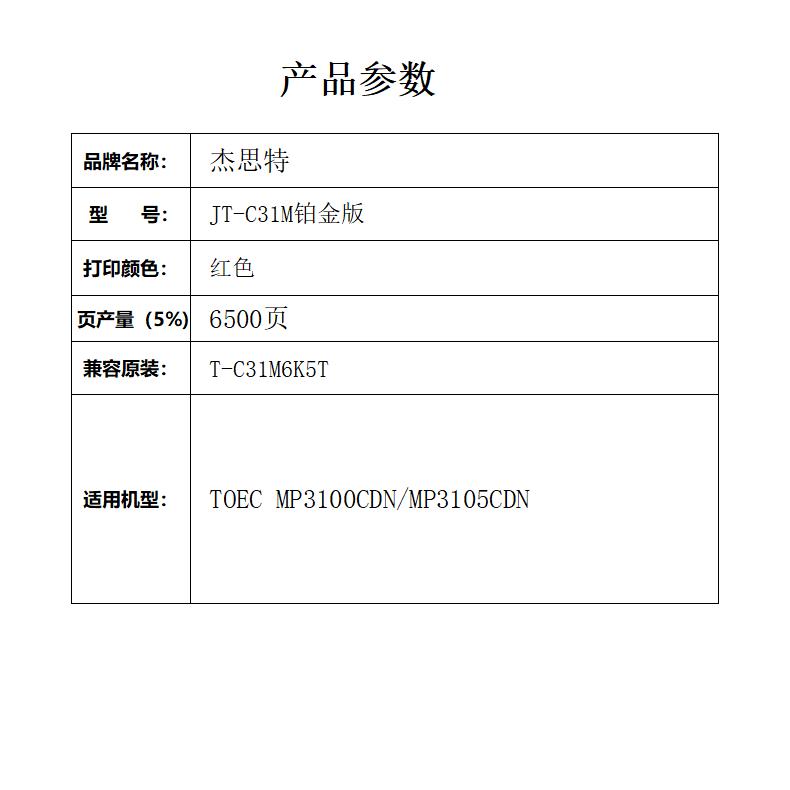 杰思特JT-C31M铂金版红色粉盒 适用于光电通TOEC MP3100CDN MP3105CDN1支 红色