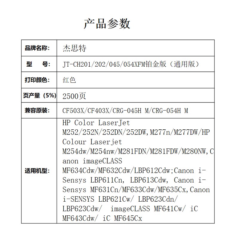 杰思特JT-CH201/202/045/054XFM铂金版(通用版)硒鼓适用惠普M254dw1支装 红色