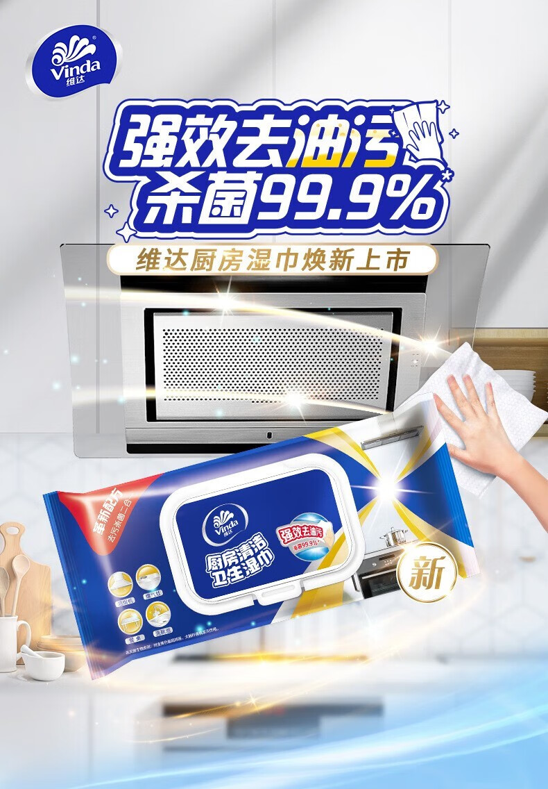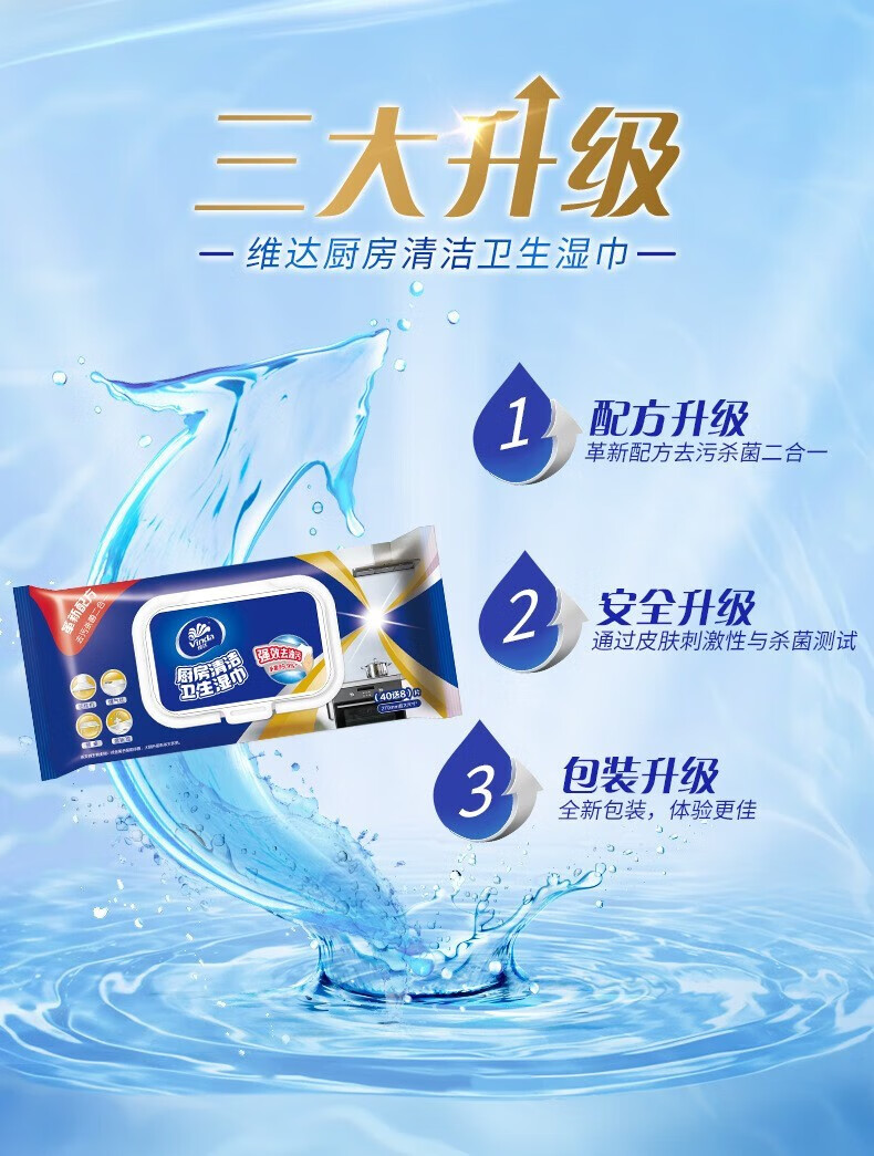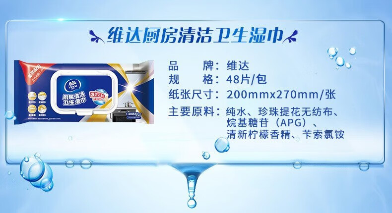 维达厨房清洁湿巾单包装48片VW4002厨房湿巾-1包(单位:包)