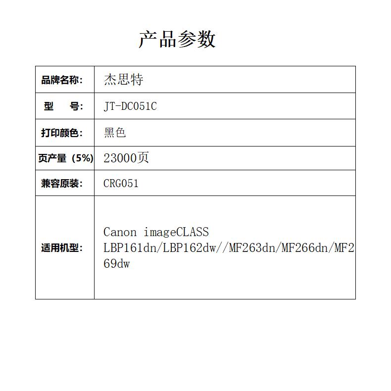 杰思特CRG051硒鼓JT-DC051C适用佳能iC MF269dw 266dn LBP162DW支 黑色