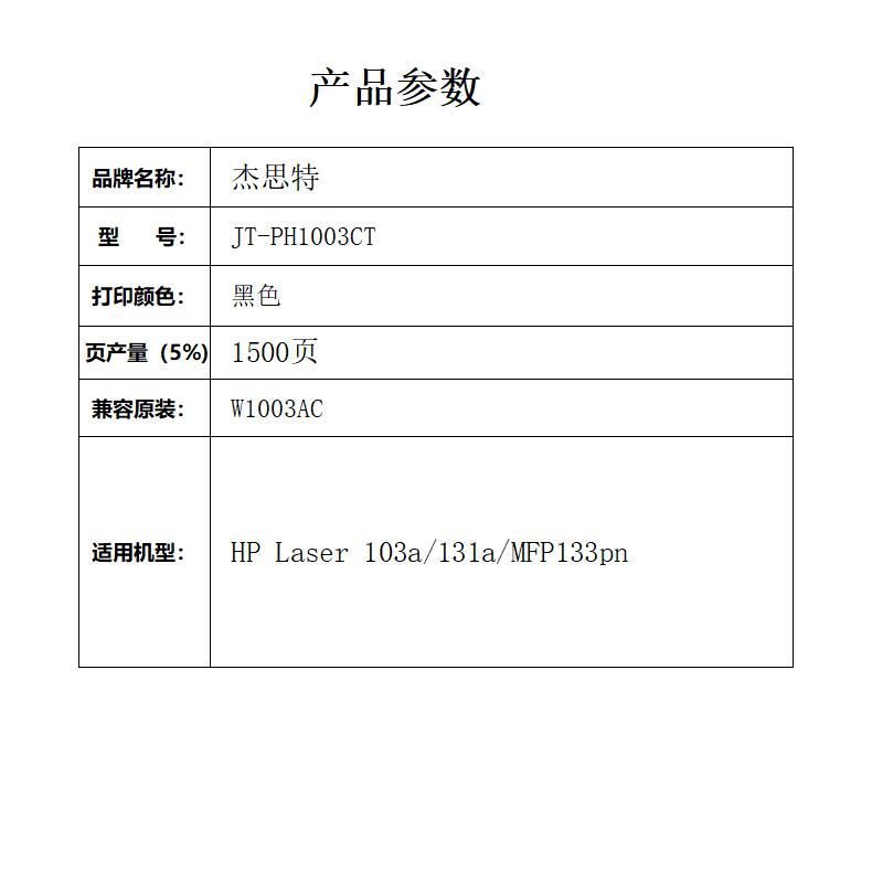杰思特W1003AC易加粉粉盒带芯片适用惠普HP Laser 103a MFP 131a 133p支 黑色
