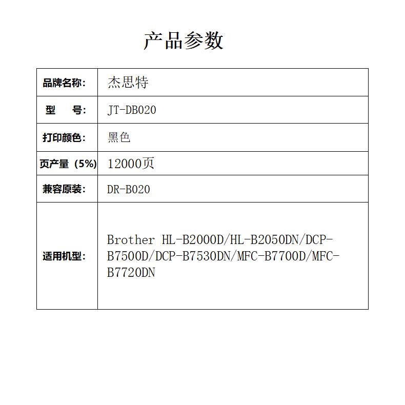杰思特JT-DB020硒鼓适用兄弟BrotherHL-B2000D/HL-B2050DN/DCP支 黑色