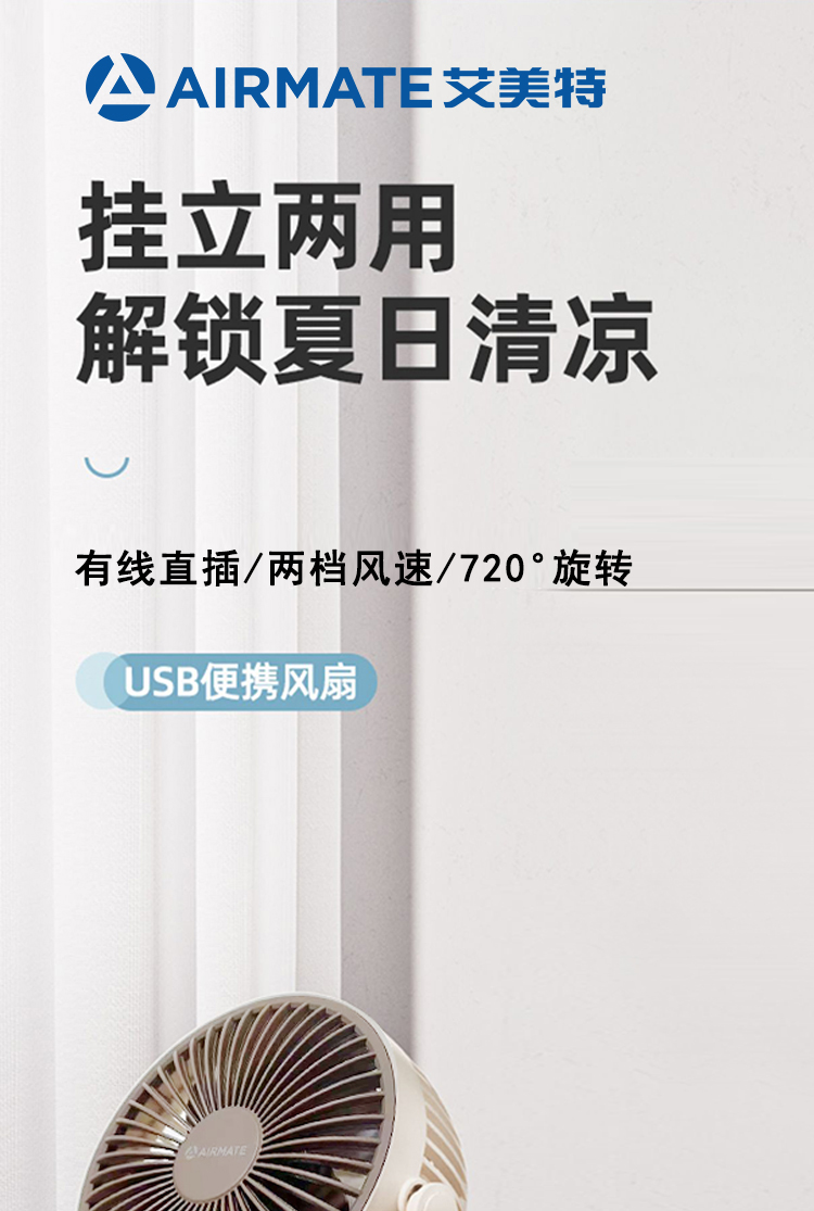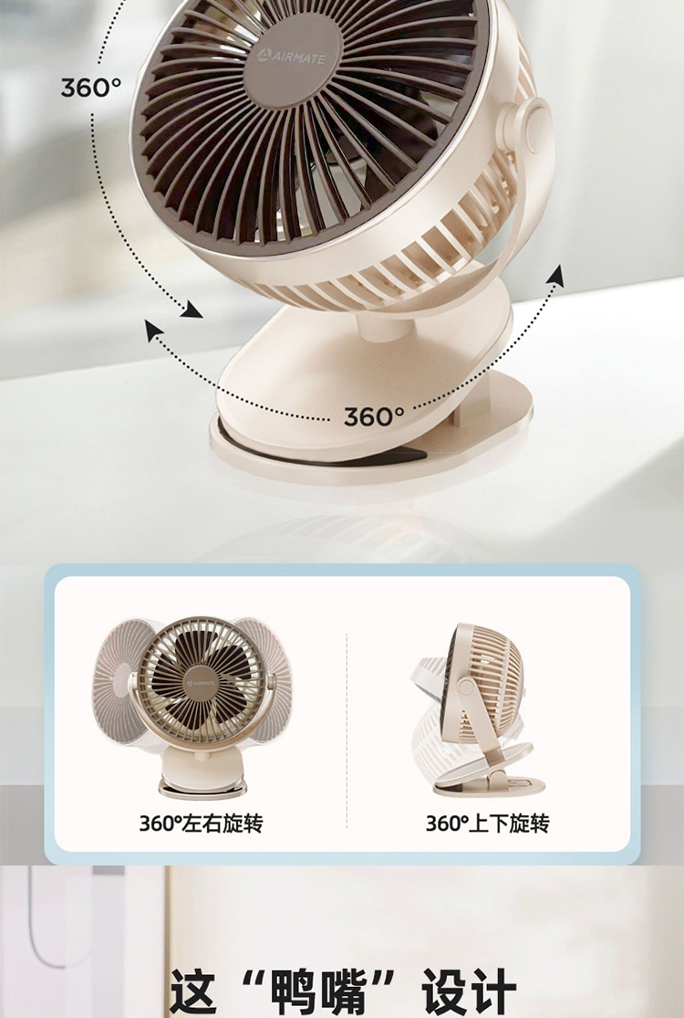 艾美特(AIRMATE) AH23-4 5w USB夹扇 白色(单位:台)