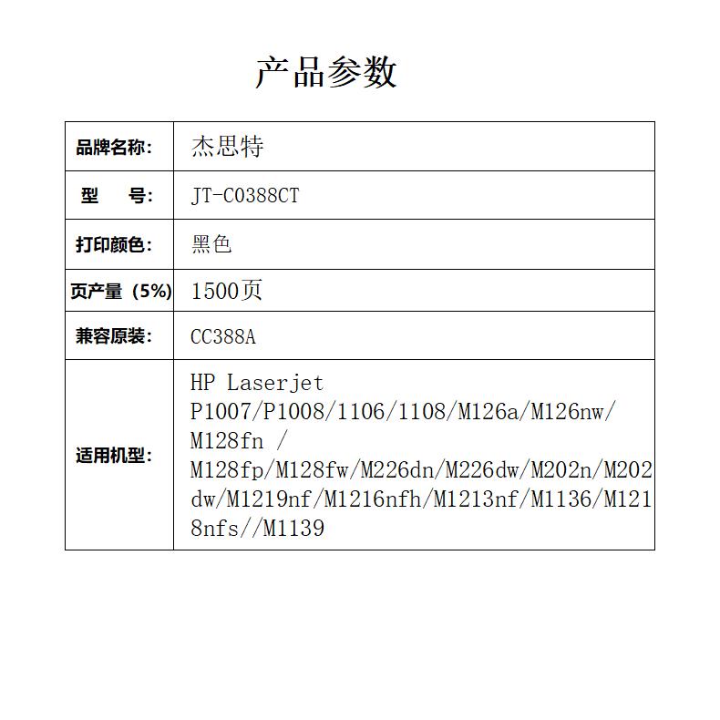 杰思特CC388A硒鼓JT-C0388CT适用惠普P1007 P1008 1106 1108 支 黑色
