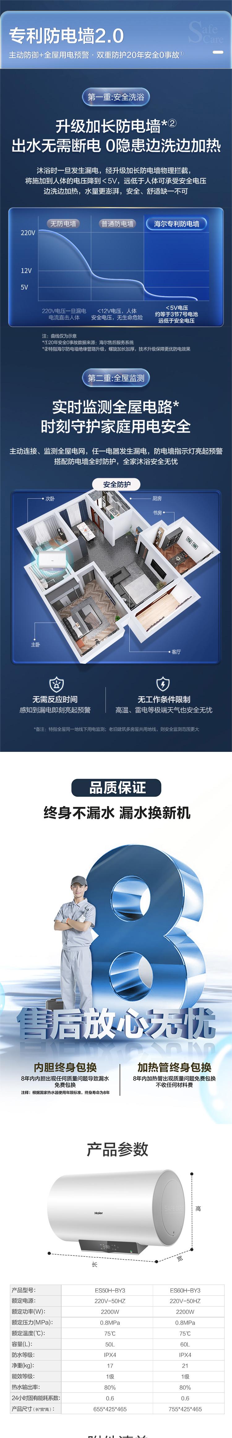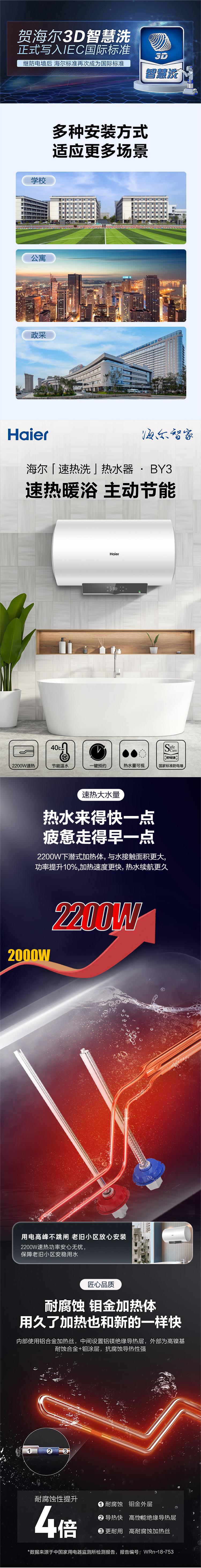 海尔 ES60H-BY3 速热式60升电热水器 白色 白色