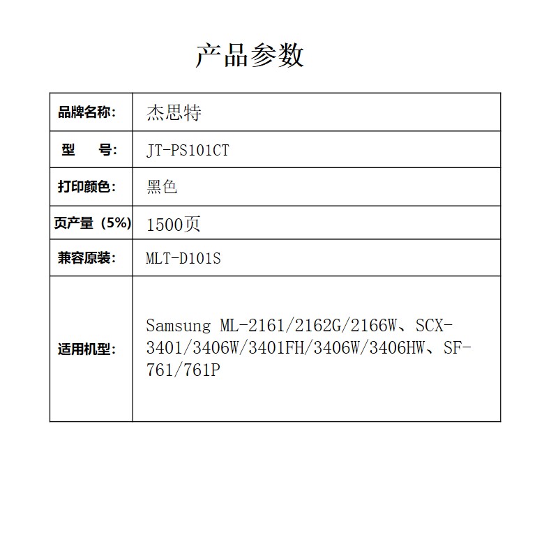 杰思特MLT-D101S硒鼓JT-PS101CT适用三星ML-2161 SCX-3401打印机硒鼓支 黑色
