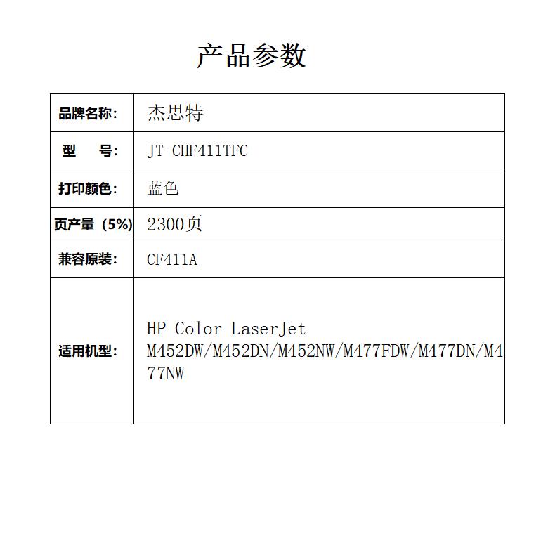 杰思特CF411A青色硒鼓JT-CHF411TFC适用惠普M452DW M477FDWm377dw支 蓝色