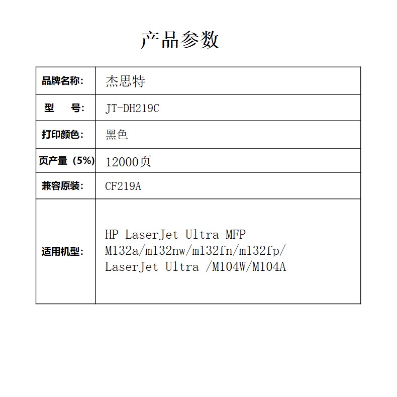 杰思特CF219A硒鼓JT-DH219C带芯片 适用惠普M132a m132nw M104W支 黑色
