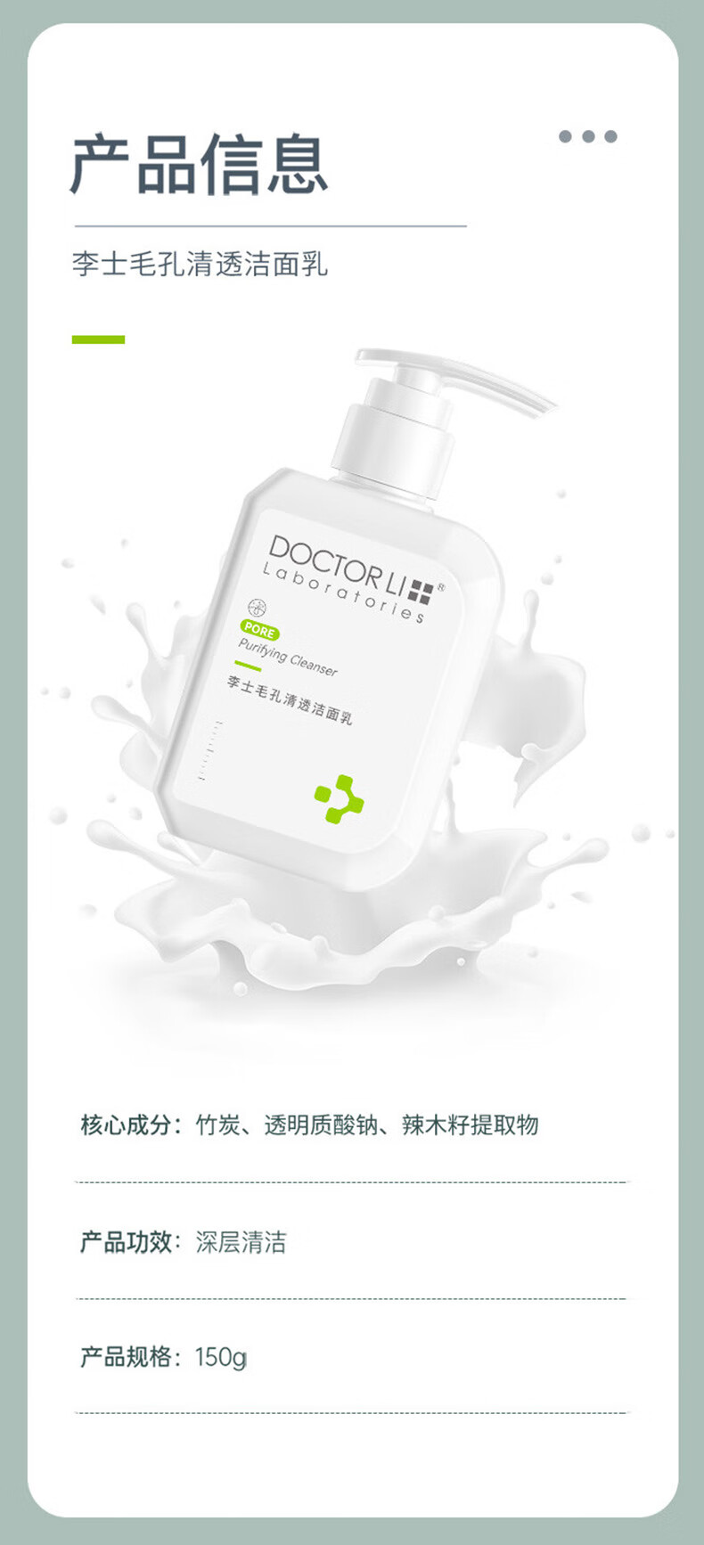 李医生(DOCTOR LI) 毛孔清透洁面乳 LYS-002 150g 绿色(单位:瓶)