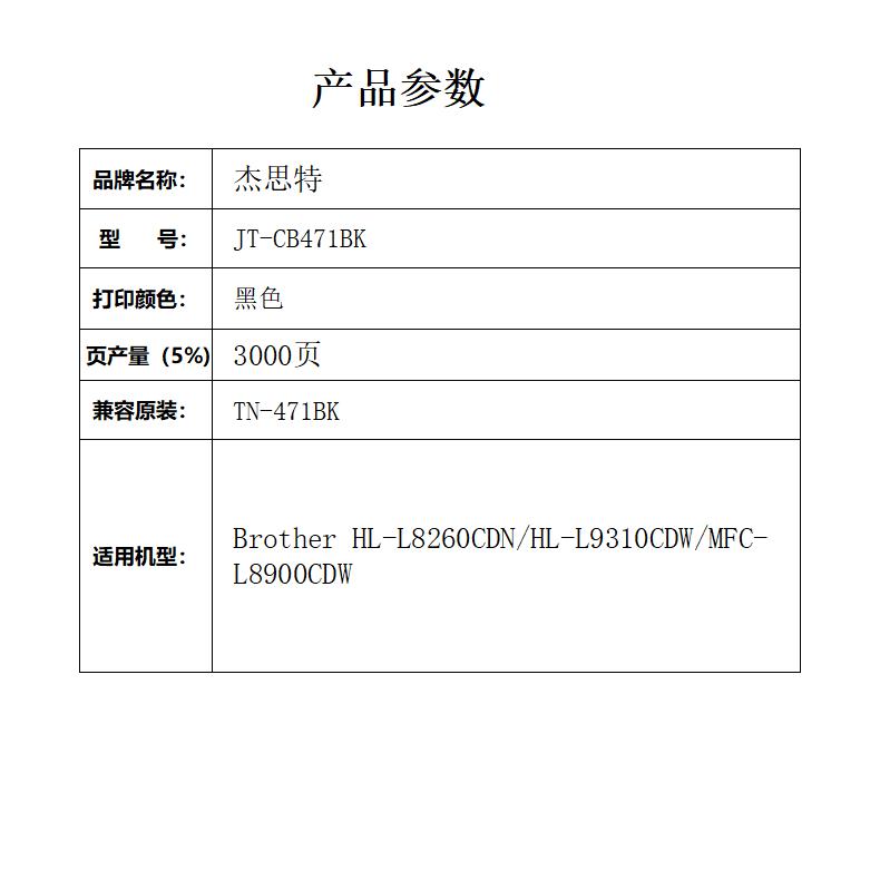 杰思特471BK硒鼓JT-CB471BK适用兄弟HL-L8260CDN HL-L9310CDW支 黑色