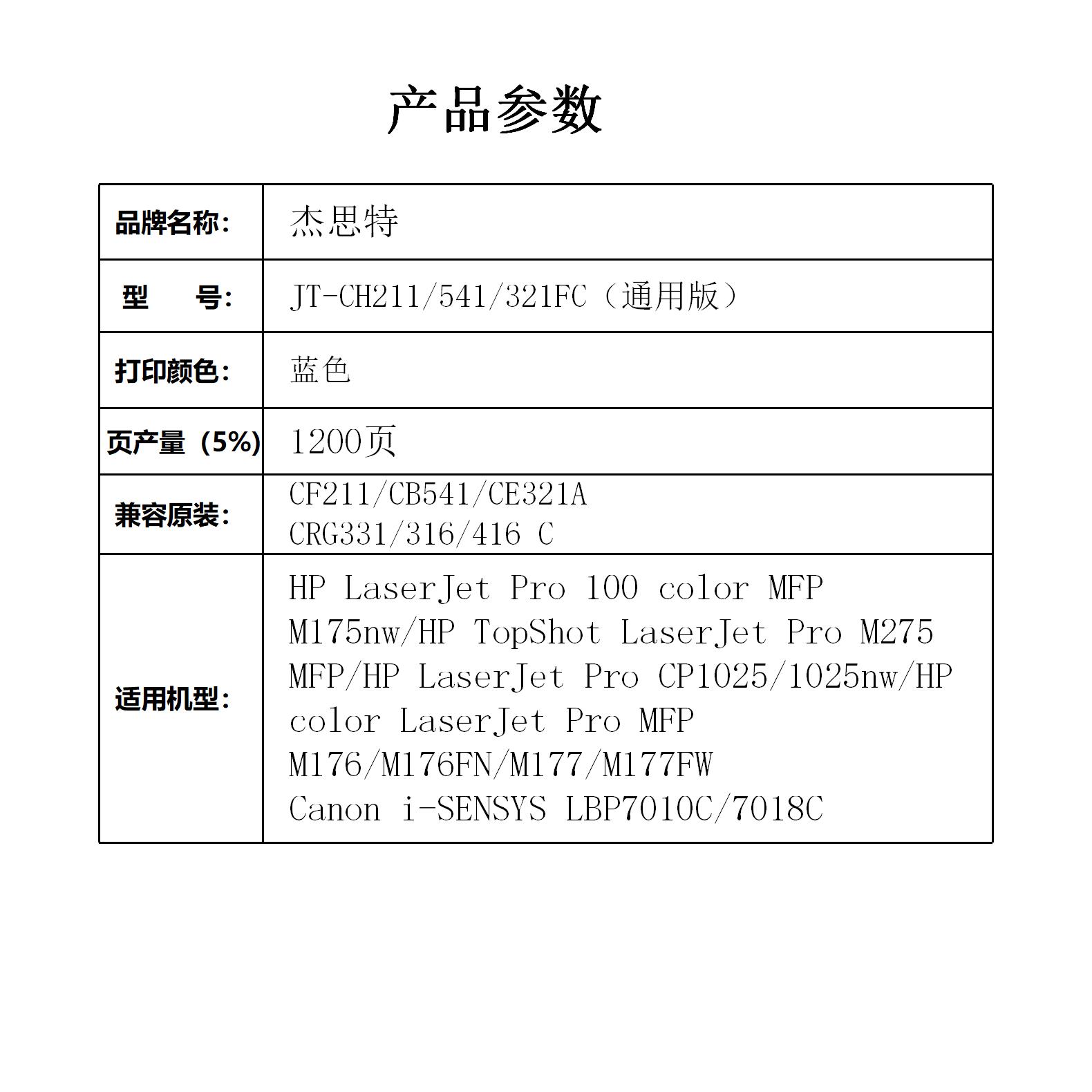 杰思特JT-CH211/541/321FC(通用版)硒鼓适用惠普M251n 251nw MFP 支 蓝色