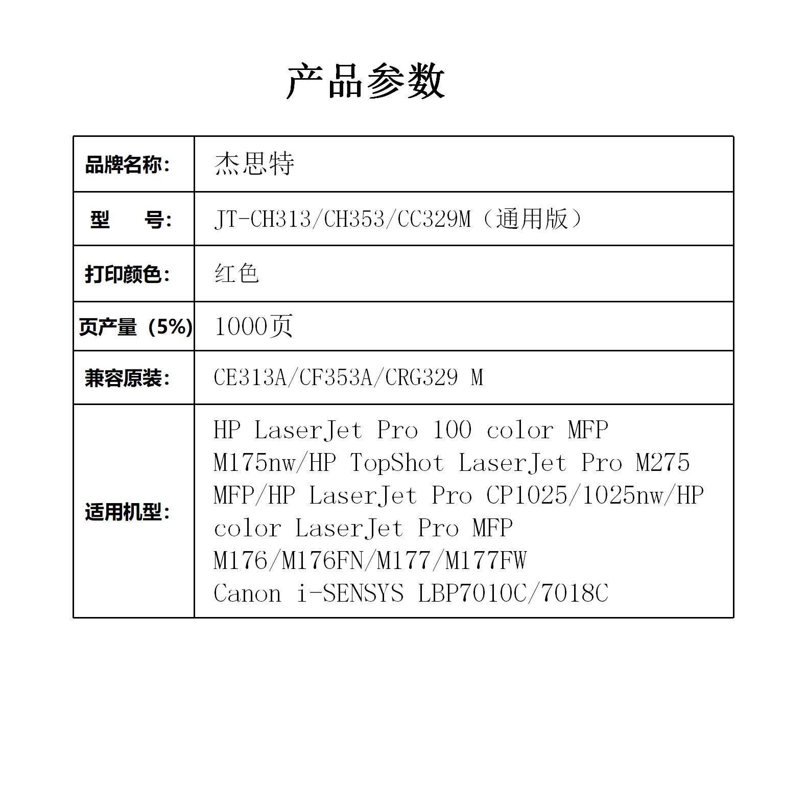 杰思特JT-CH313/CH353/CC329M(通用版)适用惠普M275/CP1025支 红色