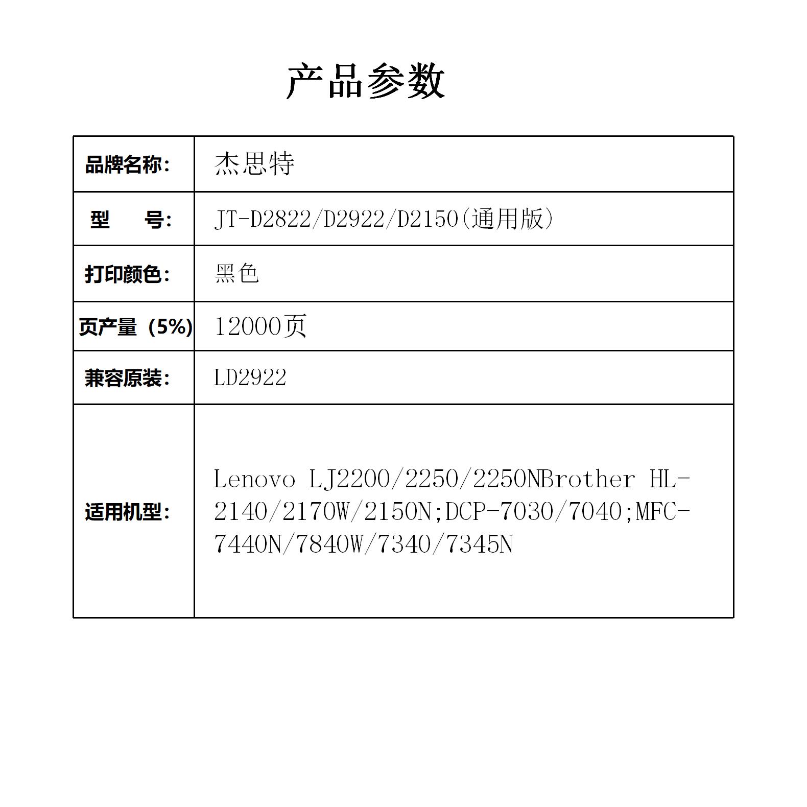 杰思特JT-D2822/D2922/D2150(通用版)适用联想LJ2200/2250 支 黑色