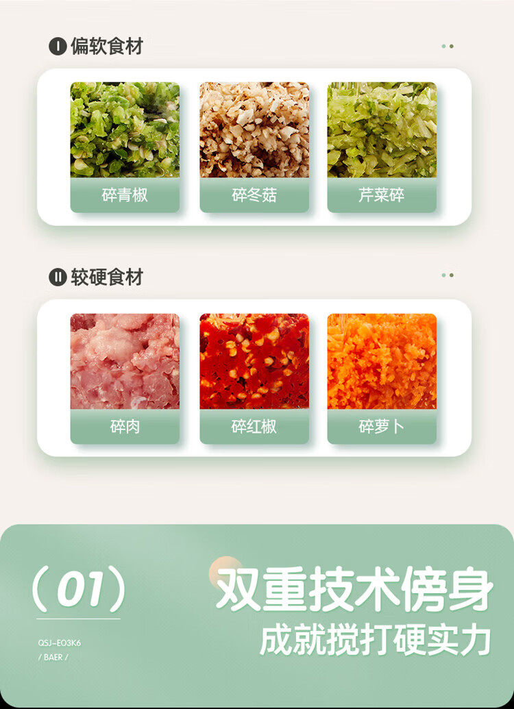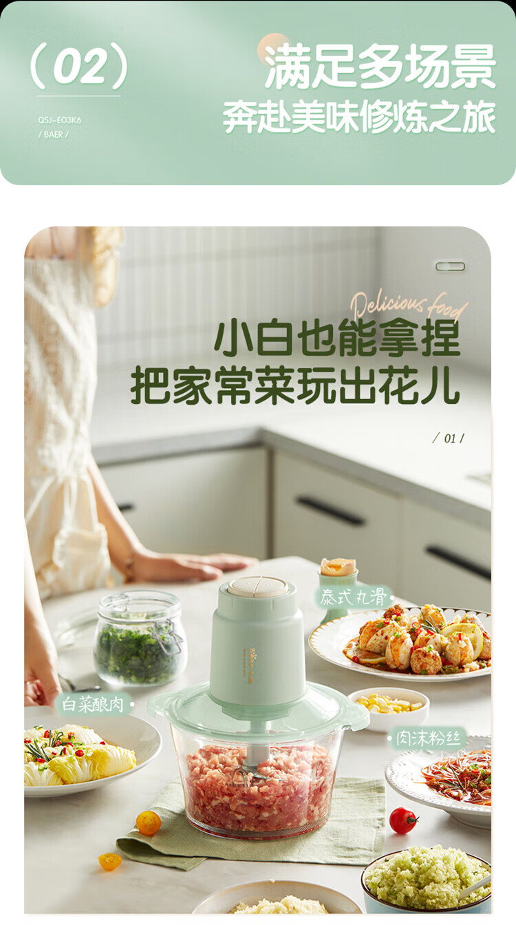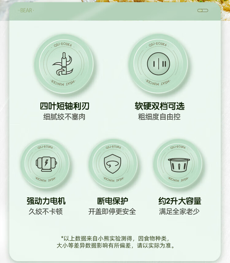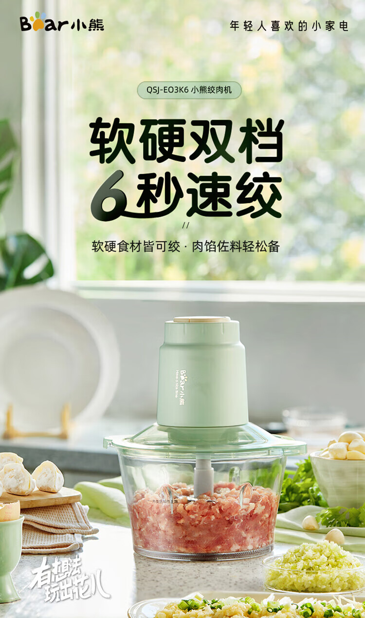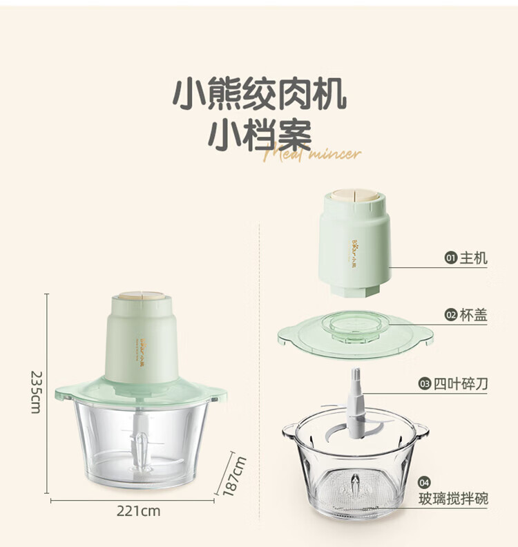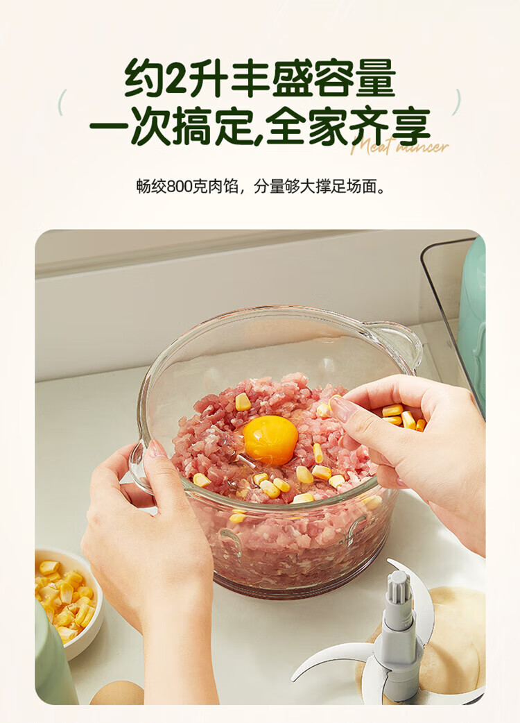 小熊(Bear) 1.8L绞肉机家用 QSJ-E03K6(台) 浅杉绿