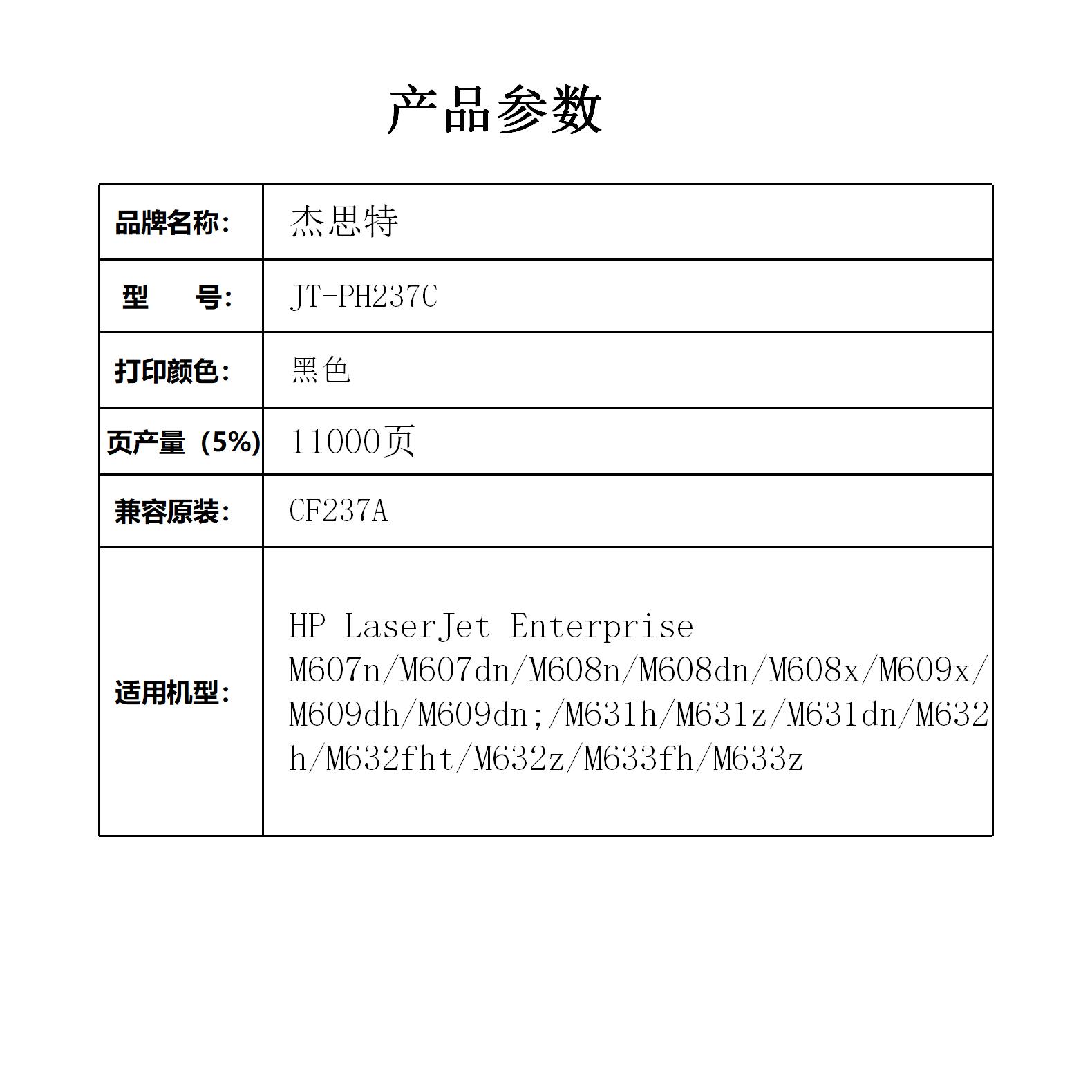杰思特JT-PH237C适用惠普HP LaserJetEnterprise7n/M607dn 支 黑色
