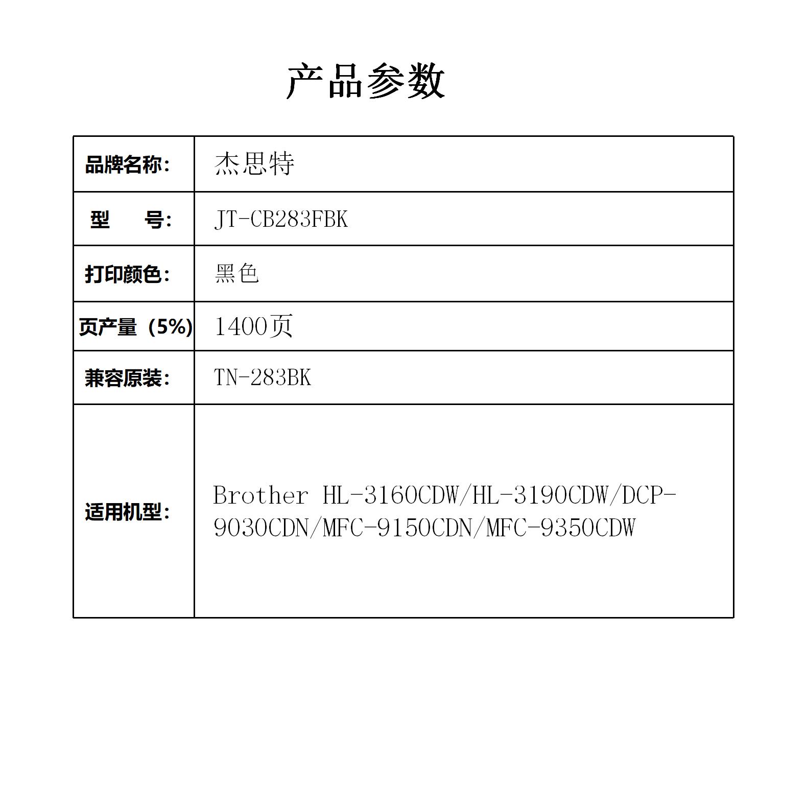 杰思特JT-CB283FBK适用Brother HL-3160CDW/HL-3190CDW 支 黑色
