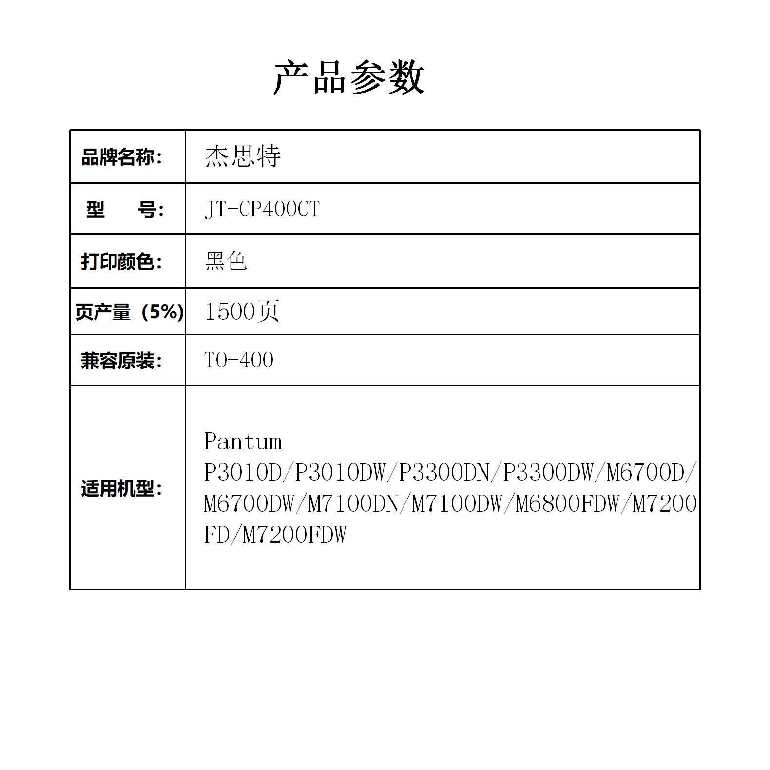 杰思特JT-CP400CT适用奔图TO-400粉盒适用P3010D M6700D M7100DN支 黑色