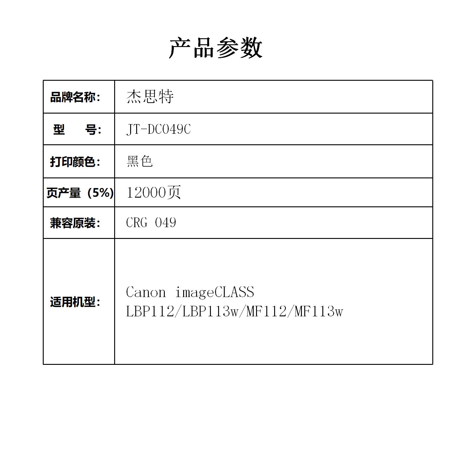 杰思特CRG-049大容量硒鼓JT-DC049C适用佳能LBP112 LBP113w MF112支 黑色