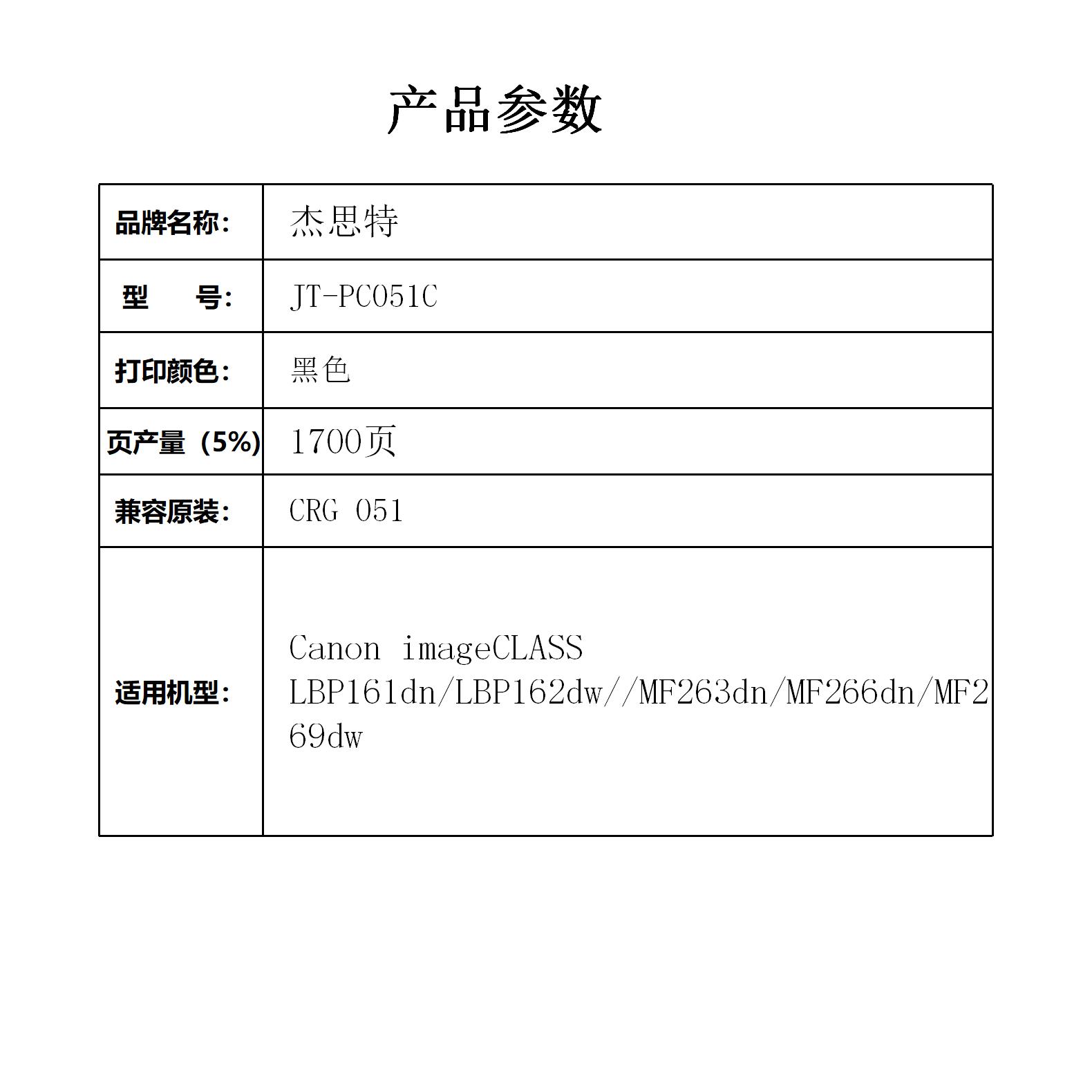 杰思特CRG051墨粉盒JT-PC051C适用佳能LBP161dn LBP162dwMF263dn支 黑色