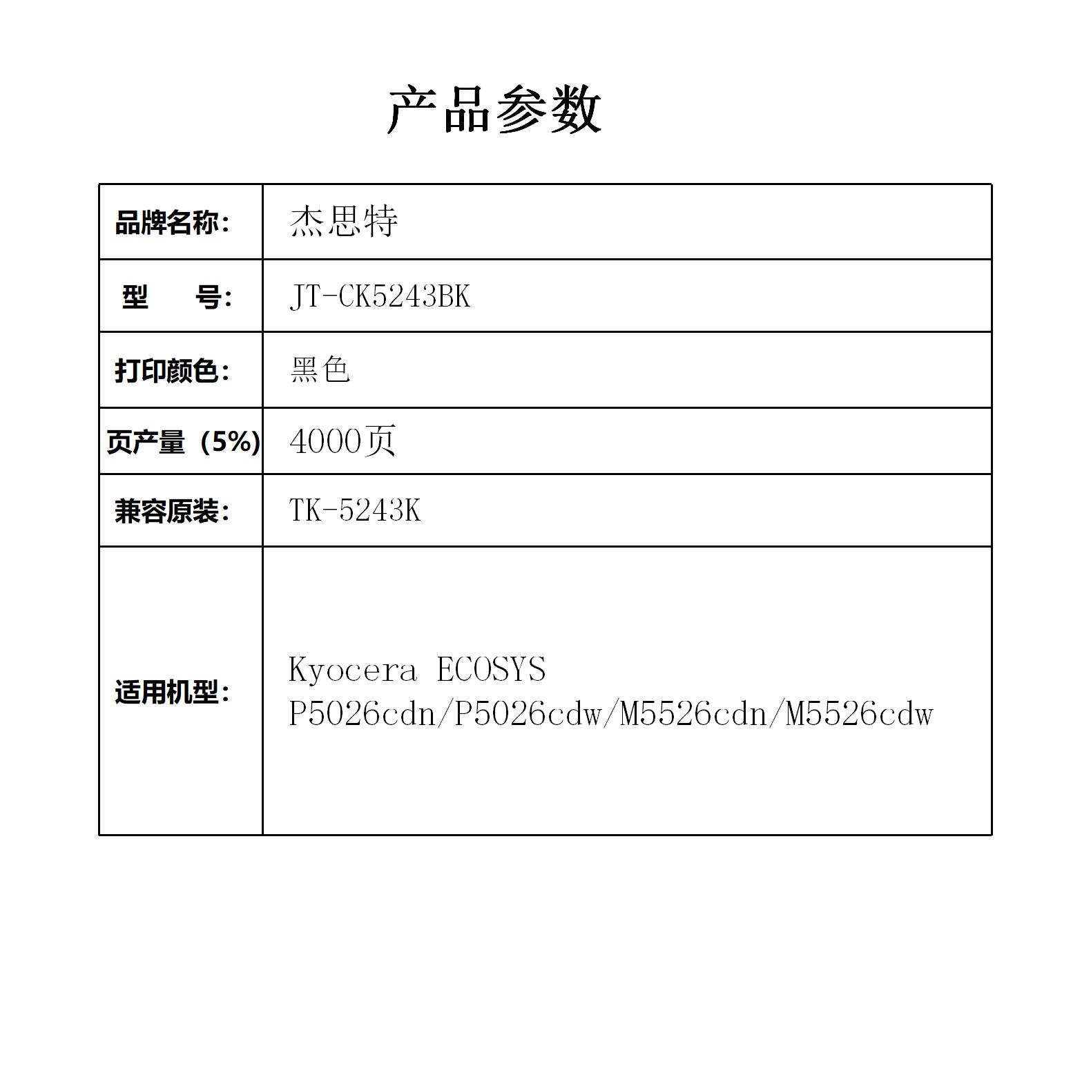杰思特 JT-CK5243BK 适用京瓷KyoceraECOSYS P5026cdn1支装 黑色