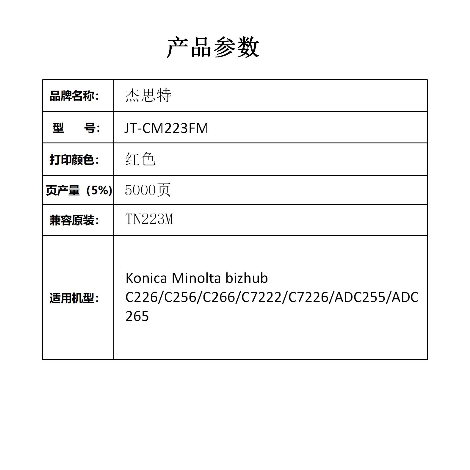 杰思特JT-CM223FM红色粉盒 适用柯尼卡C226 C256 C266 C7222 C7226支 红色