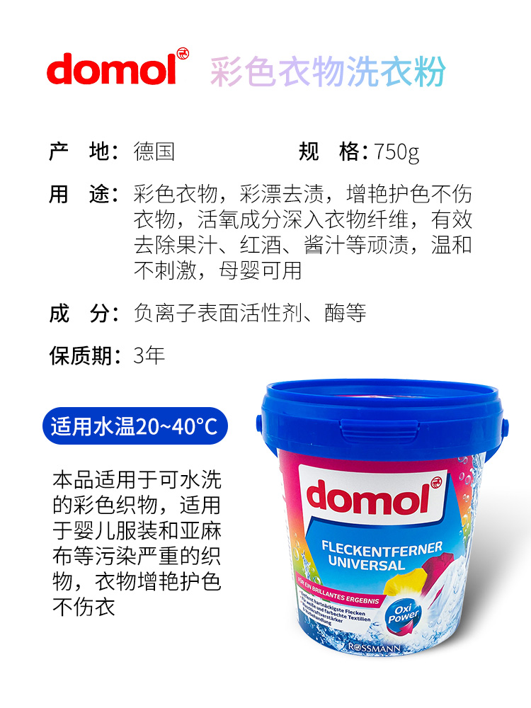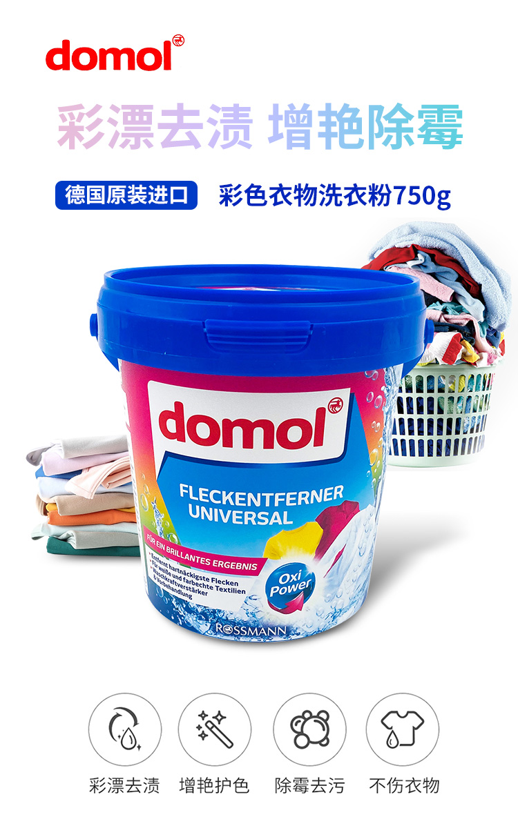 Domol 彩色衣物去污亮白粉 750g 彩漂去渍 增艳除霉 蓝色(单位:桶)