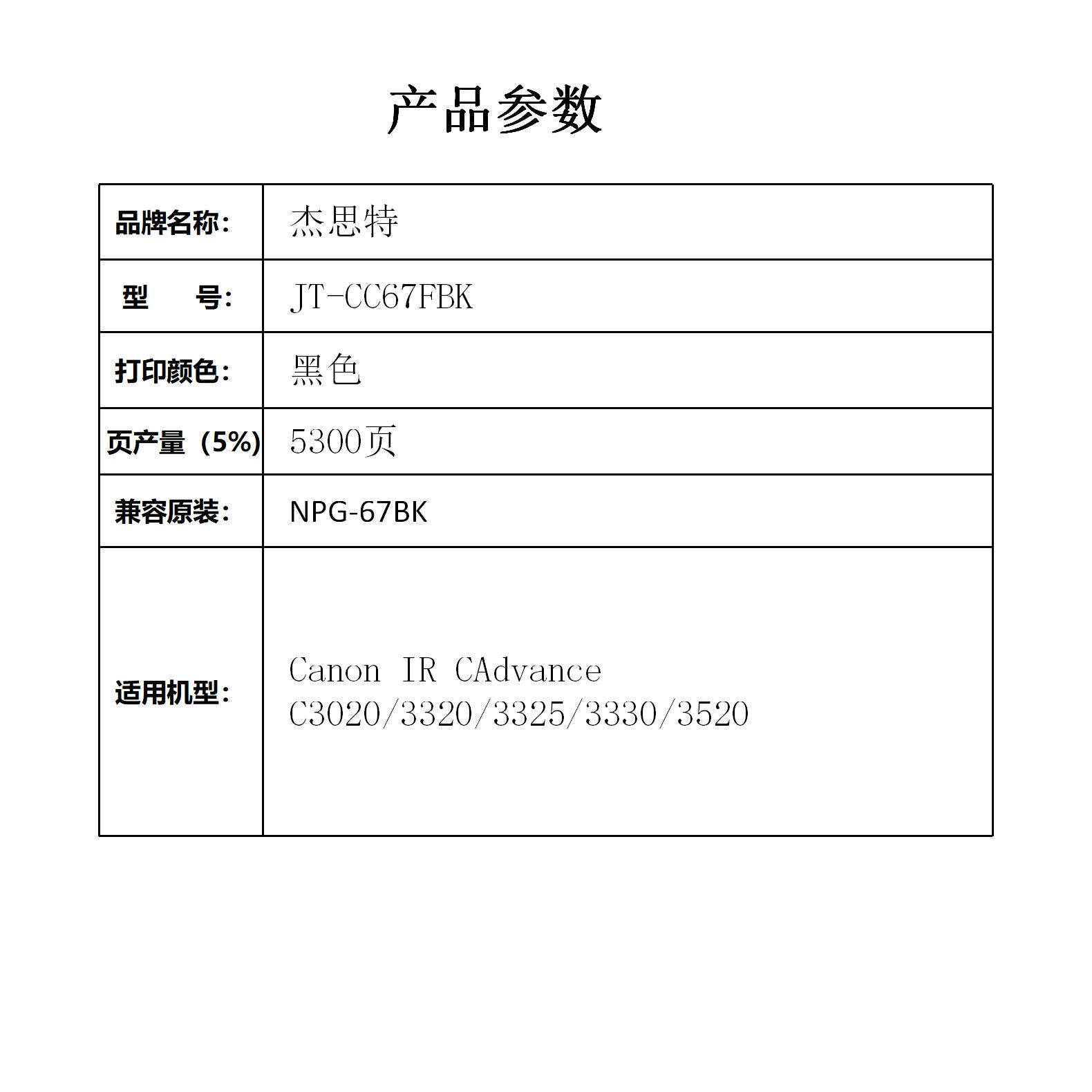 杰思特JT-CC67FBK黑色粉盒 适用佳能C3320 C3325 C3330 C3520 支 黑色