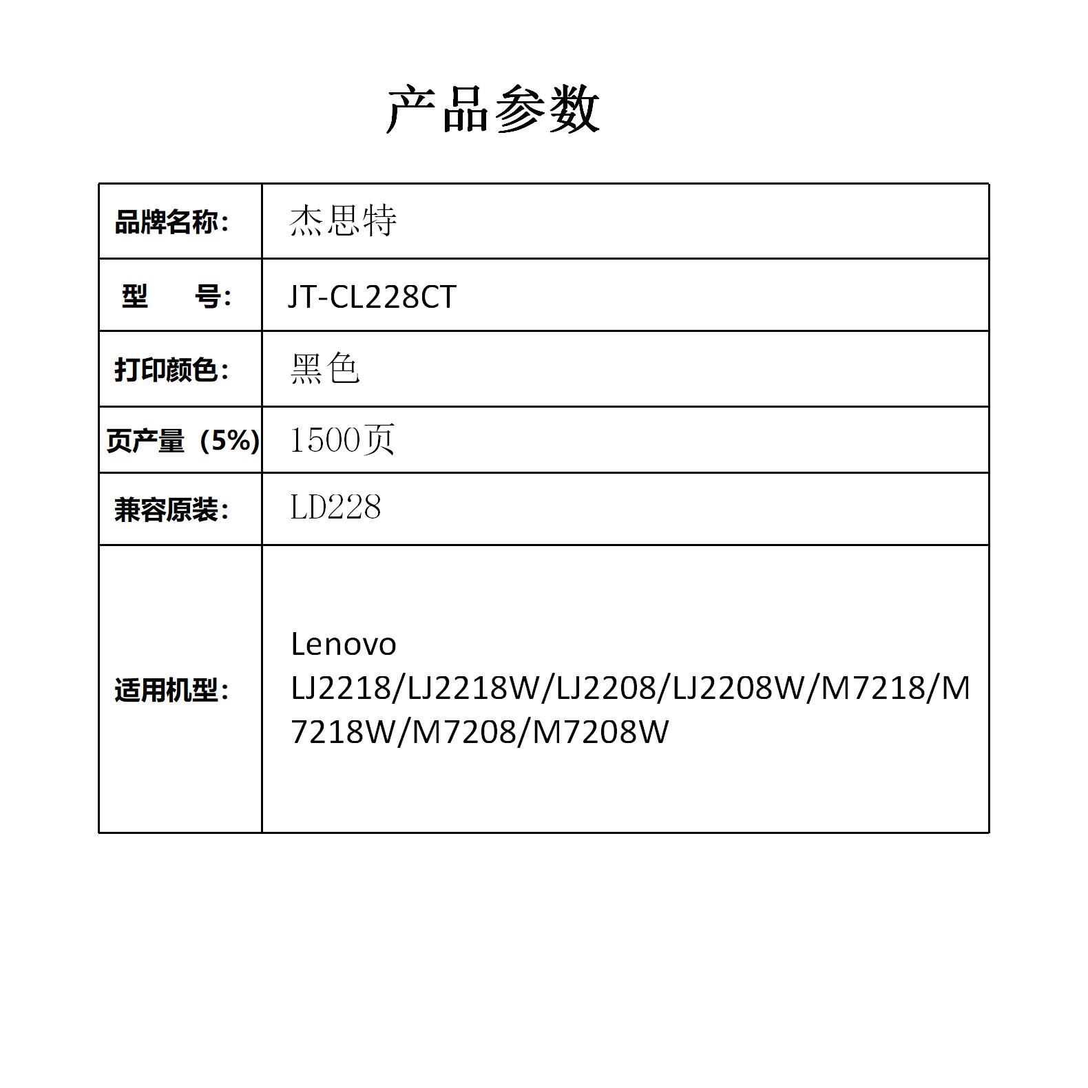 杰思特JT-CL228CT适用LD228硒鼓适用联想M7218 M7218WM7208 M7208支 黑色