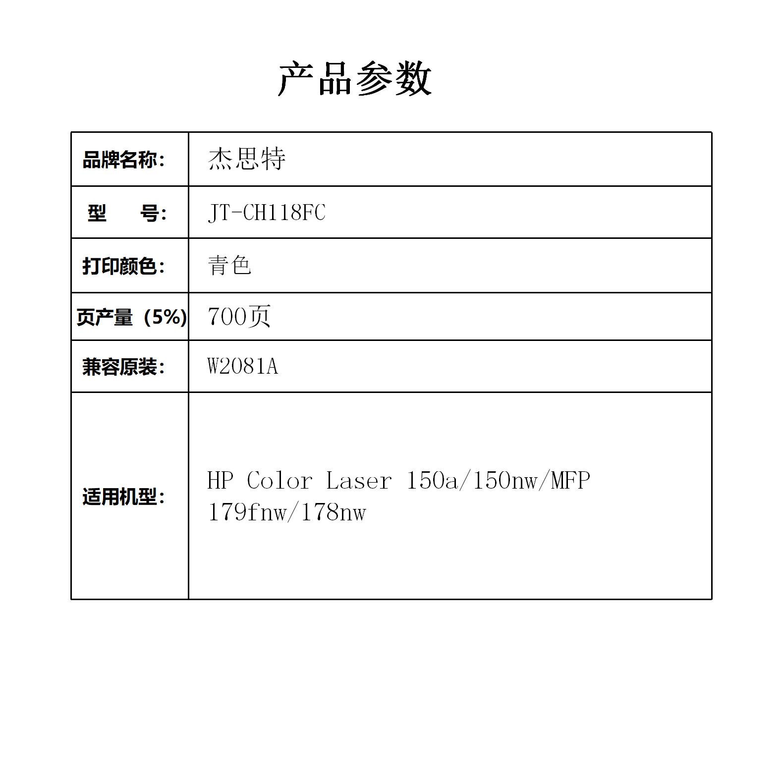 杰思特JT-CH118FC适用118A硒鼓150 MFP178 MFP179 打印机墨粉盒支 蓝色