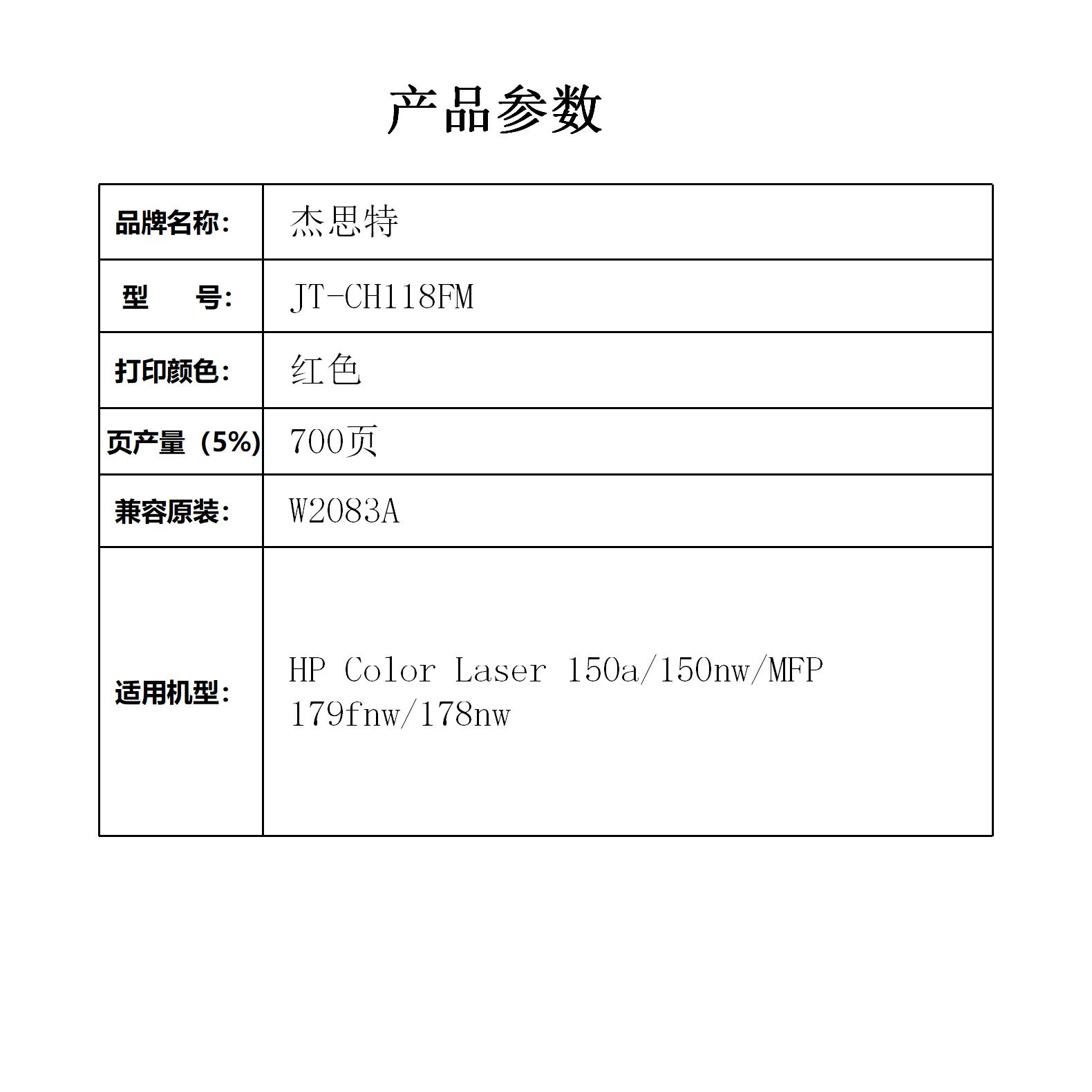 杰思特JT-CH118FM适用118A硒鼓150 MFP178 MFP179 印机墨粉盒W2083支 红色