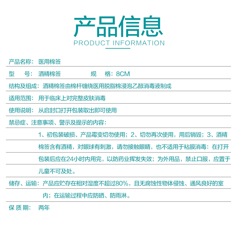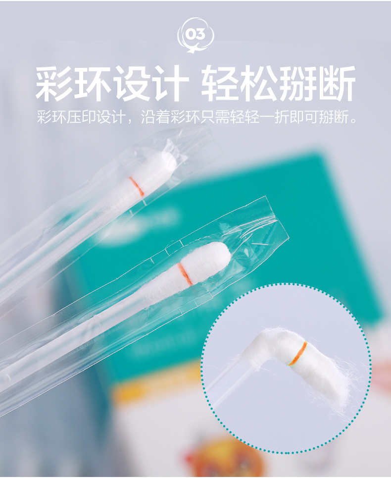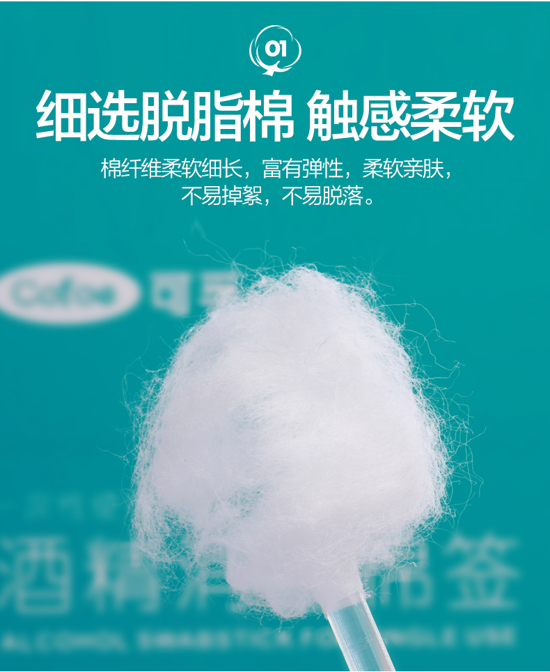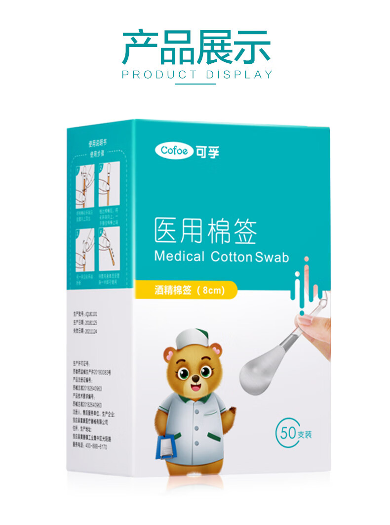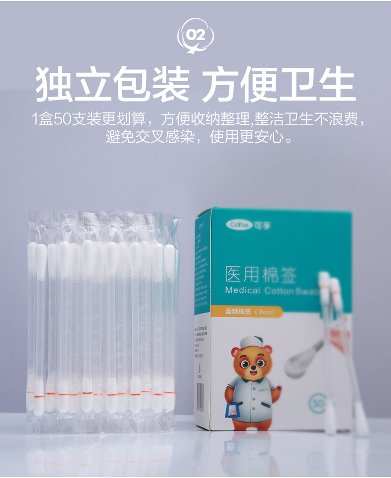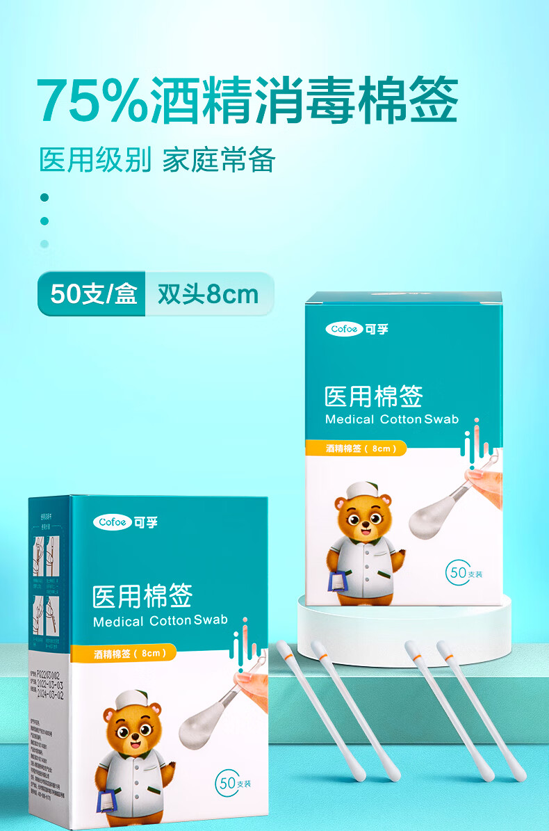 可孚医用棉签 8cmX50支装/盒(酒精棉签)*2盒 水蓝色