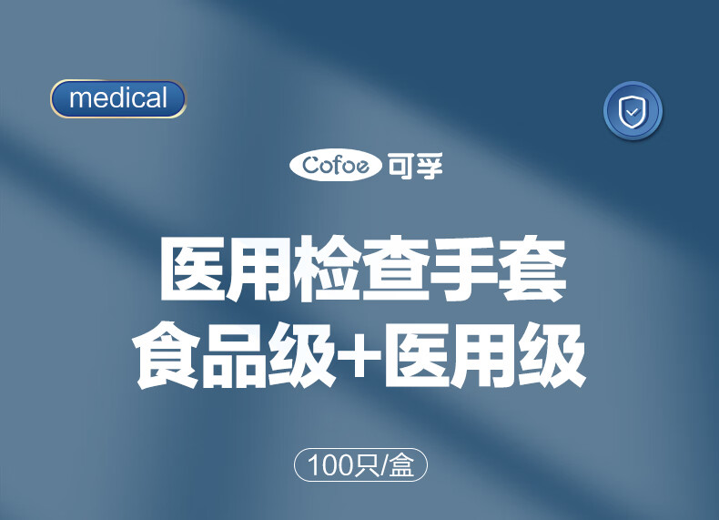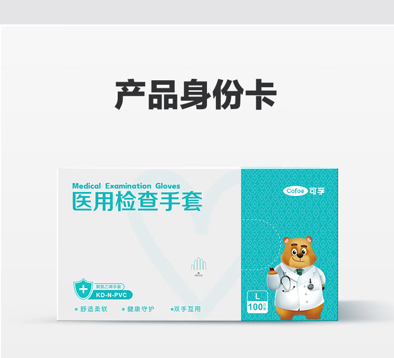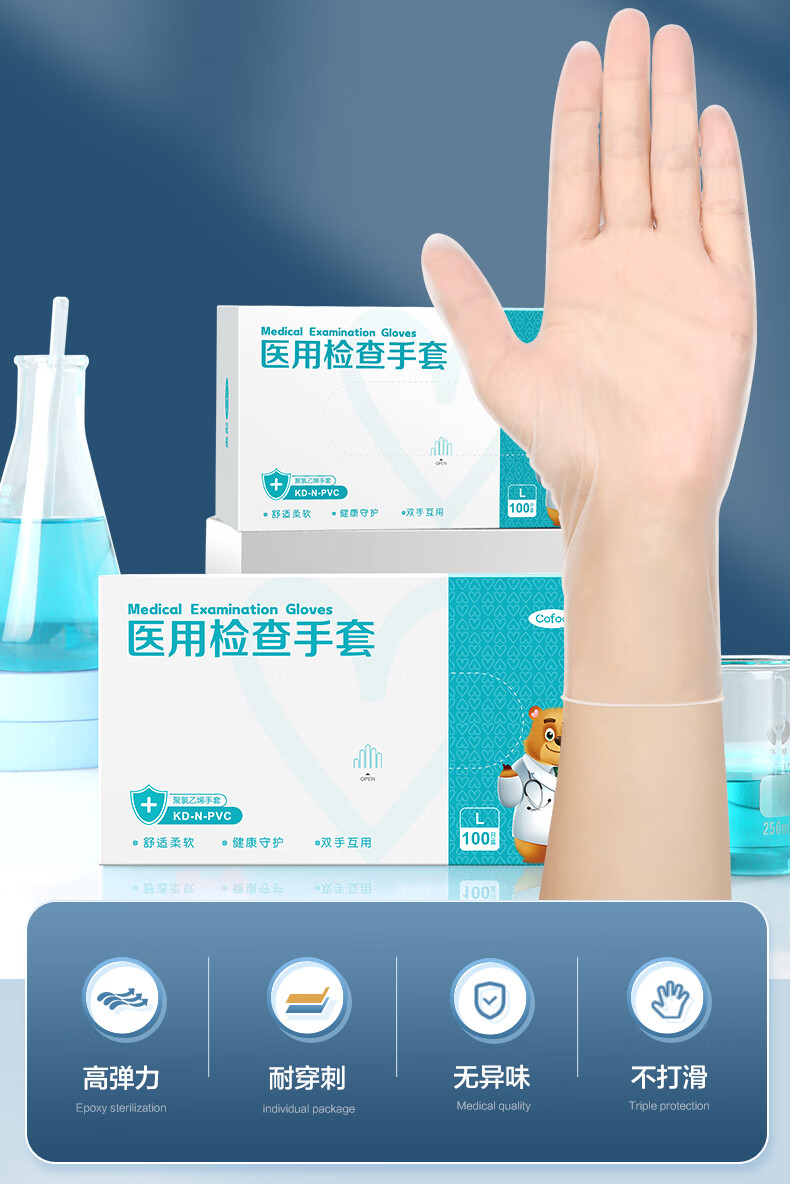 可孚医用检查手套 KD-N-PVC(聚氯乙烯手套)L-100只/盒(彩盒装)*2盒 水蓝色