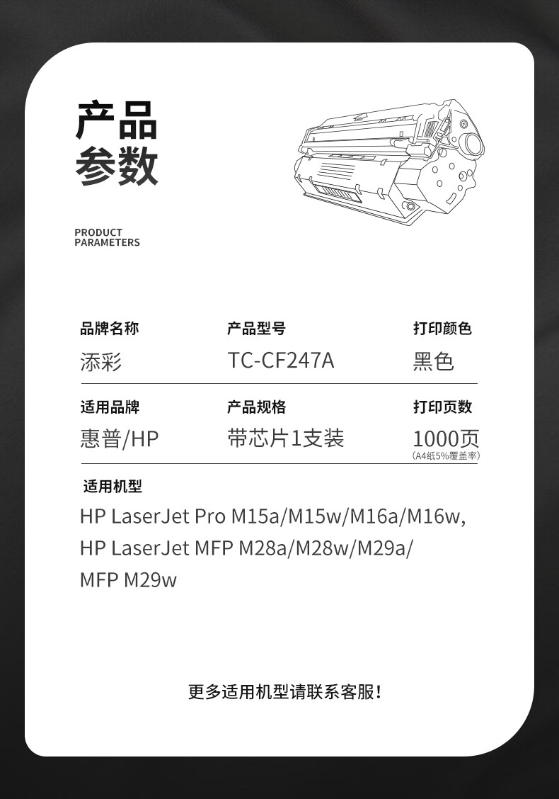 添彩TC-CF247A商用装适用HP M15a/w/M16a/w 打印量1000页 激光碳粉盒 支 黑色