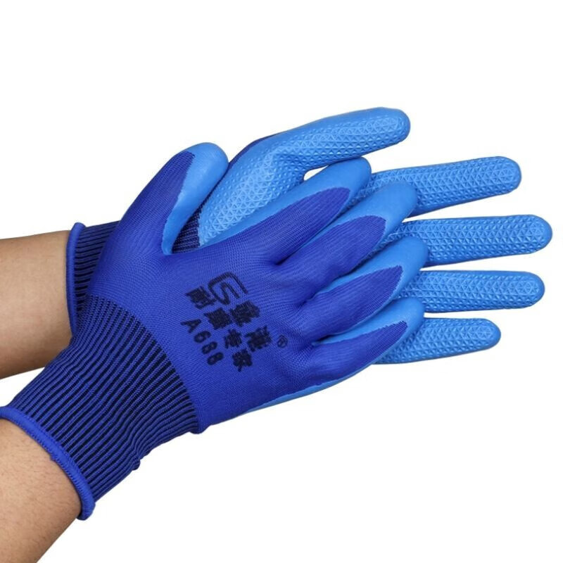 盛港浸胶劳保手套12双 乳胶起皱物理压纹防滑耐磨加工维修干活 单位:付 宝石蓝
