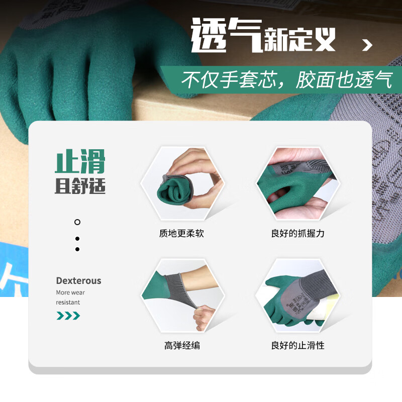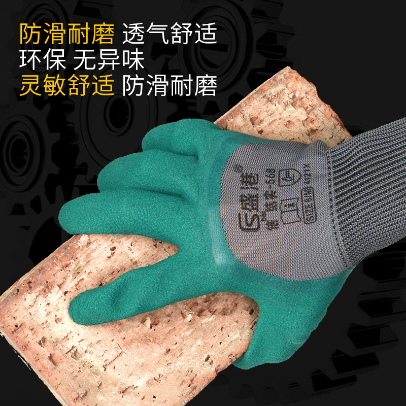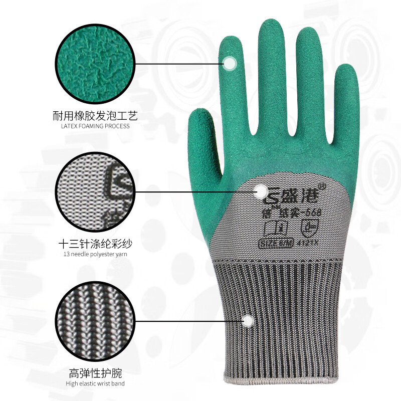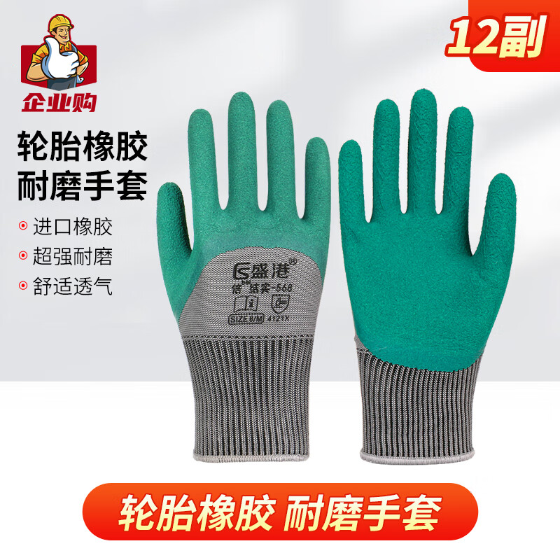 盛港 劳保手套 轮胎橡胶浸胶皱纹挂胶半挂胶皮防滑耐磨劳防工地工作防护手套12付 L568(单位:付) 绮境森林