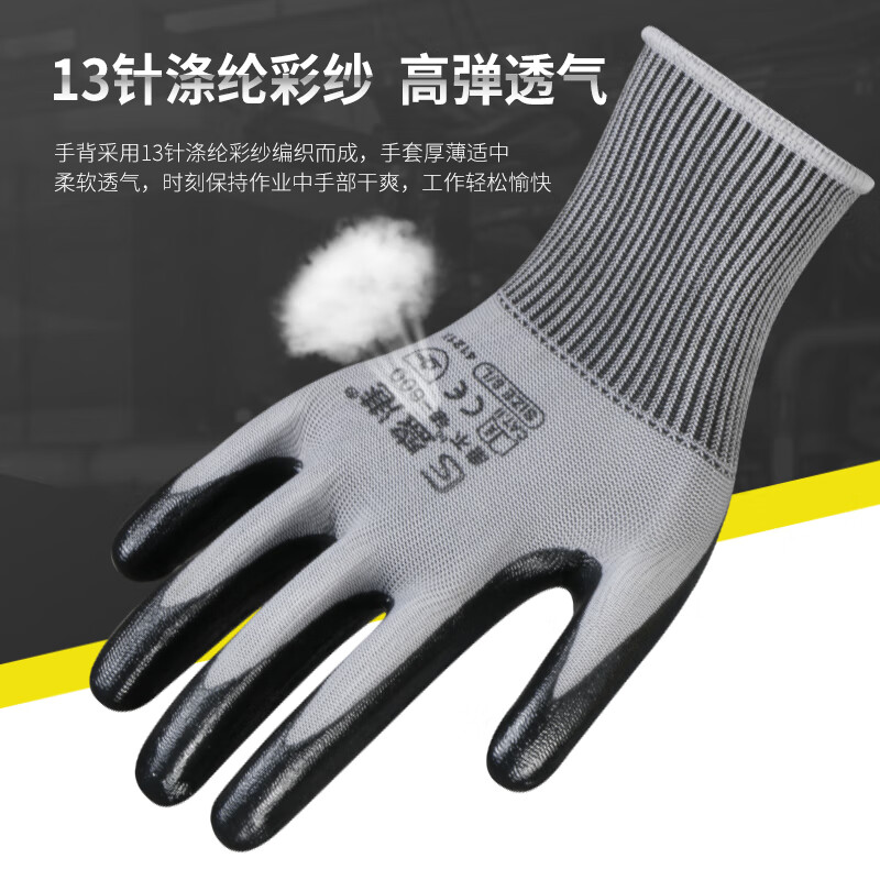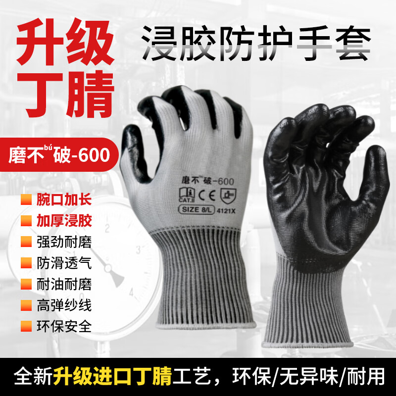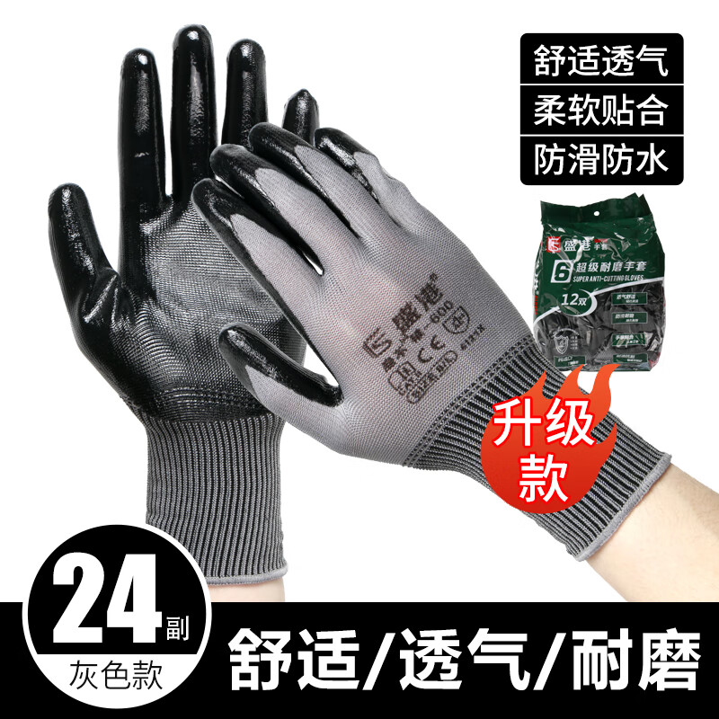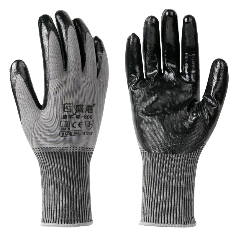 盛港 浸胶耐磨劳保手套24双 丁腈半挂橡胶防滑防水工地施工磨不破-600 单位:付 钢色