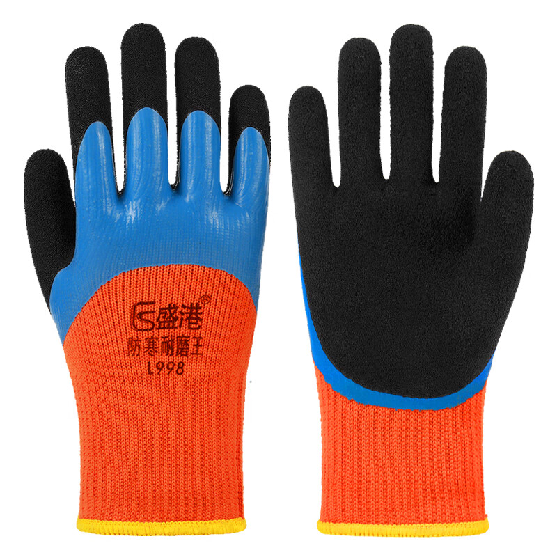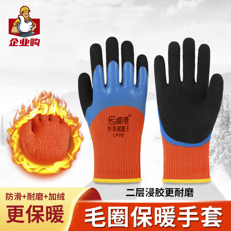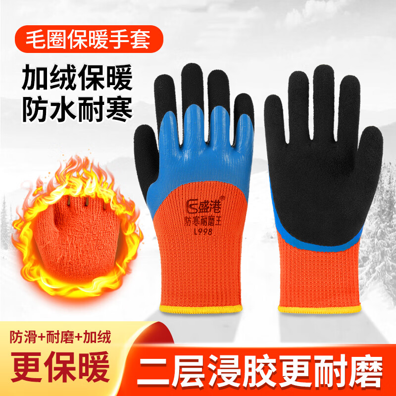 盛港 劳保手套 双层涂掌毛圈秋冬保暖挂胶耐磨防滑工地工作干活劳动防护手套劳防用品L998 10付 付 拿铁色