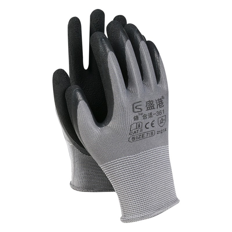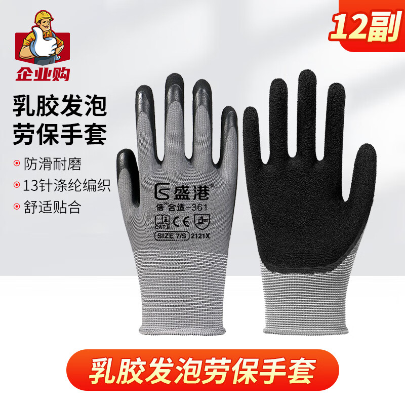 盛港 劳保手套 乳胶发泡手套女士专用防滑耐磨透气涂胶手套维修机床工地作业-361(12付)单位:付 珍珠灰