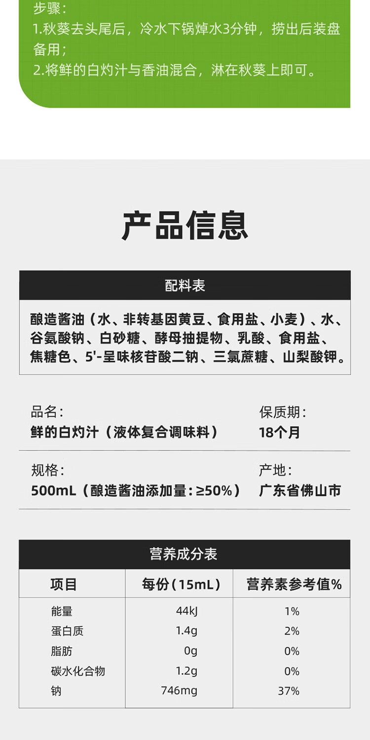 海天鲜的白灼汁500ml(单位:瓶) 500ml