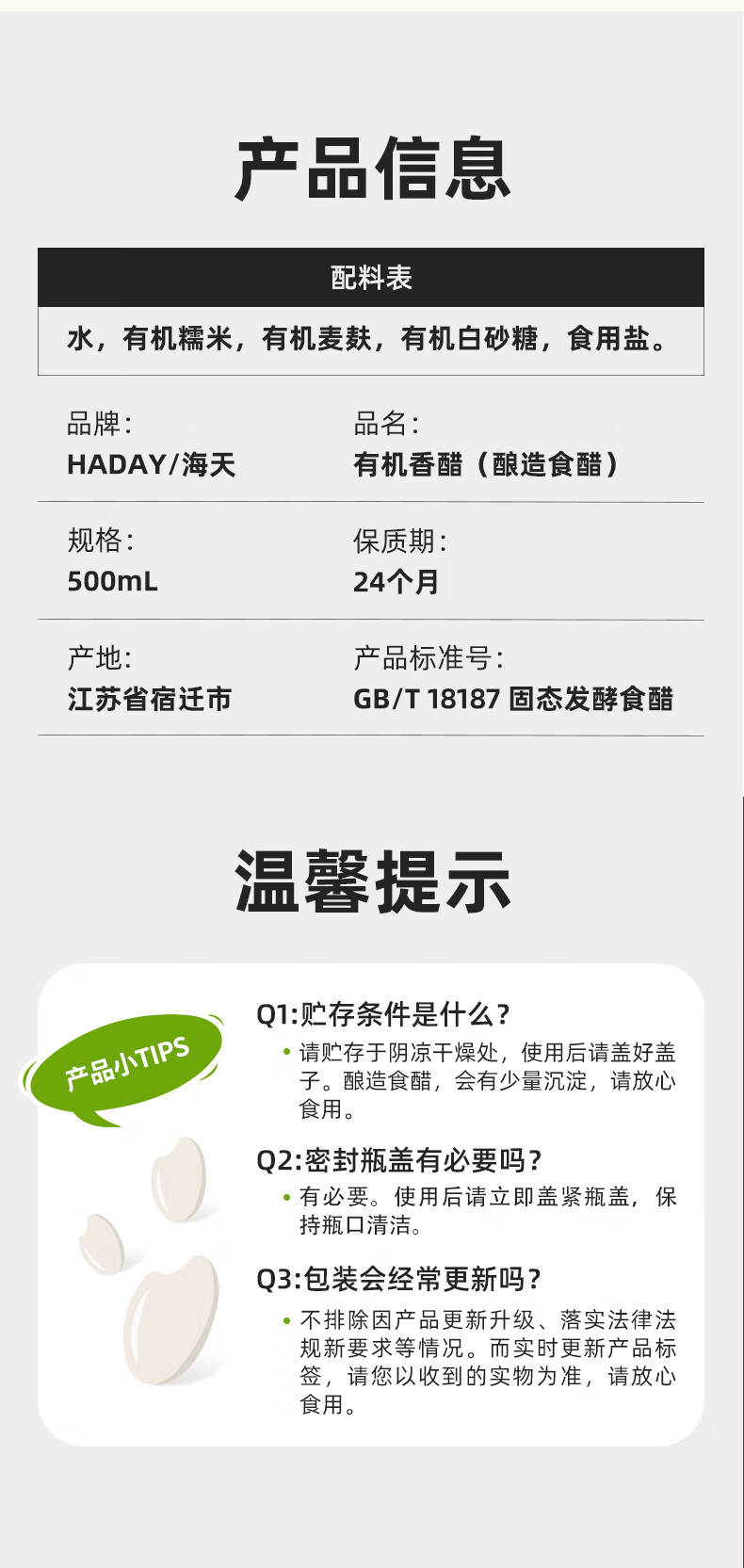 海天有机香醋500mL*2(单位:瓶) 500ml*2