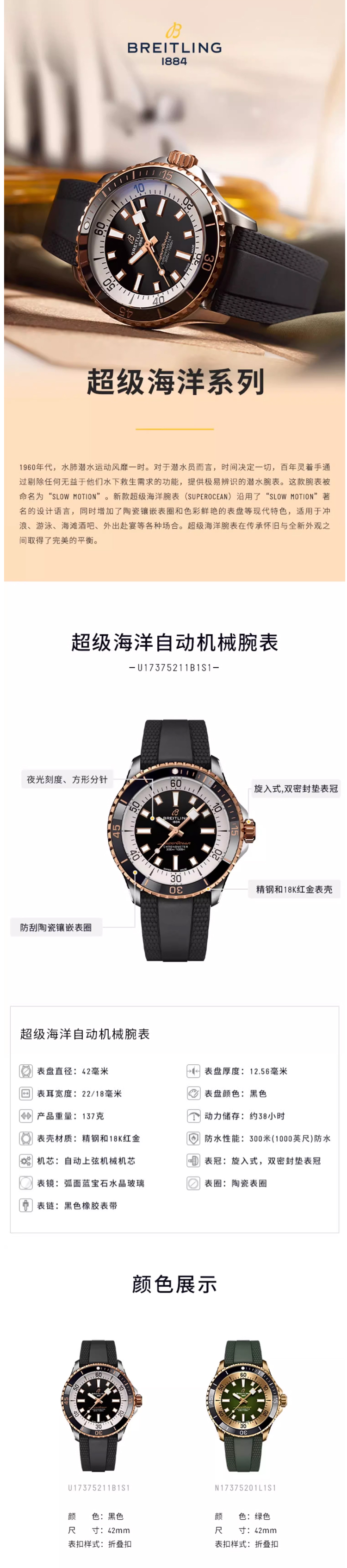 百年灵(BREITLING)超级海洋系列机械42男表 N17375201L1S1(单位:块) 绿色
