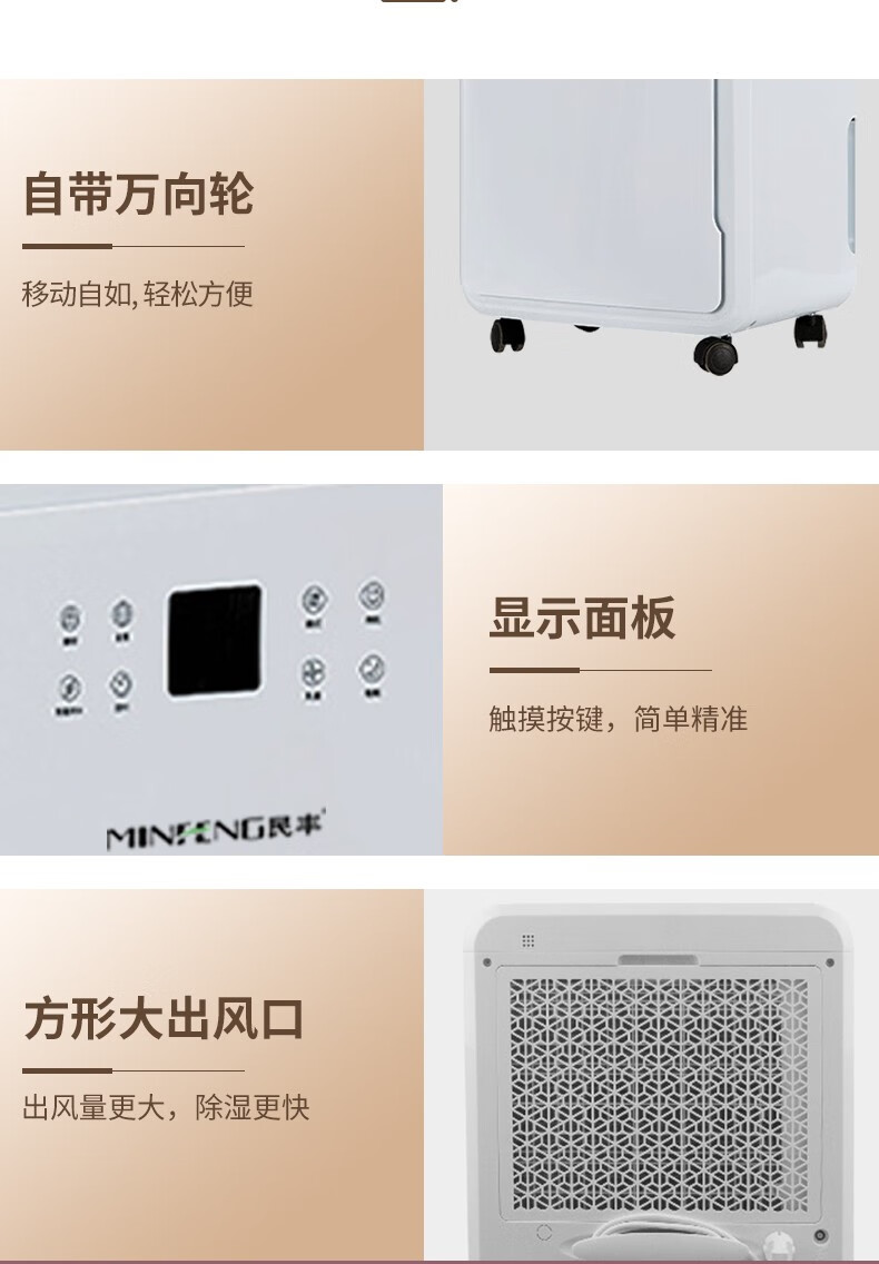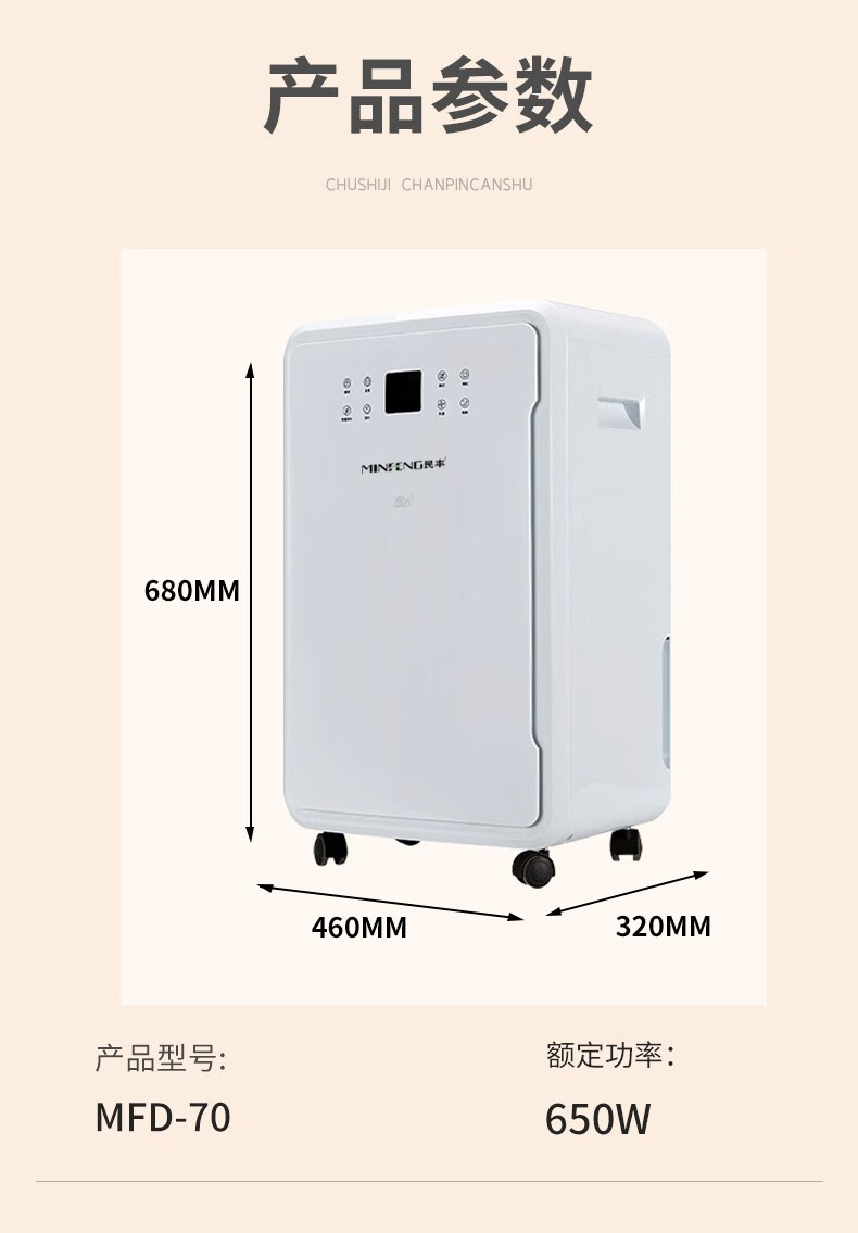 民丰 MFD-70家用除湿机/抽湿机适用面积70-140平方 车间/仓库/地下室大功率吸湿器单位:台 白色