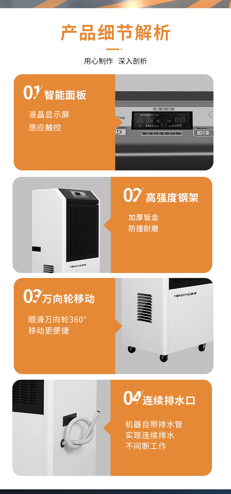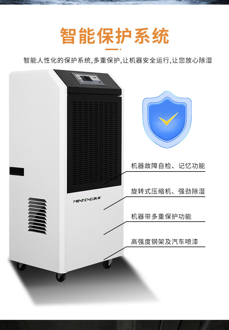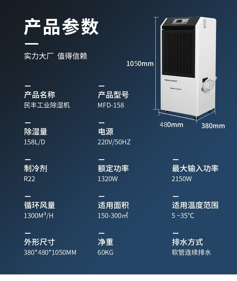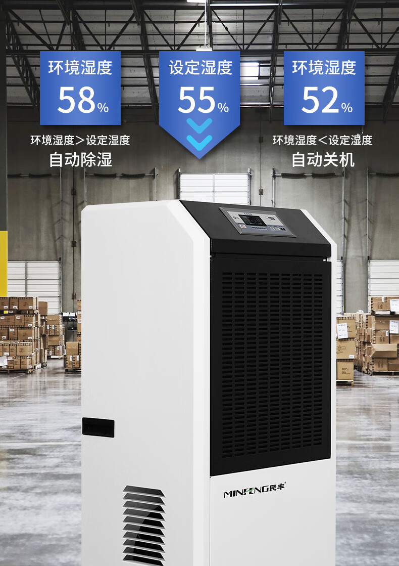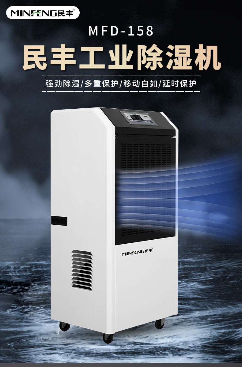 民丰MFD-158工业除湿机抽湿机适用面积150-300平方车间 仓库 地下室大功率吸湿器单位:台 白色
