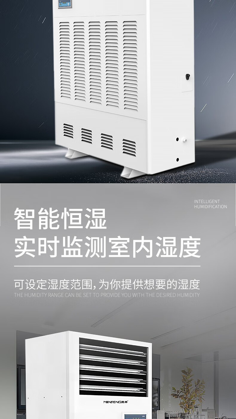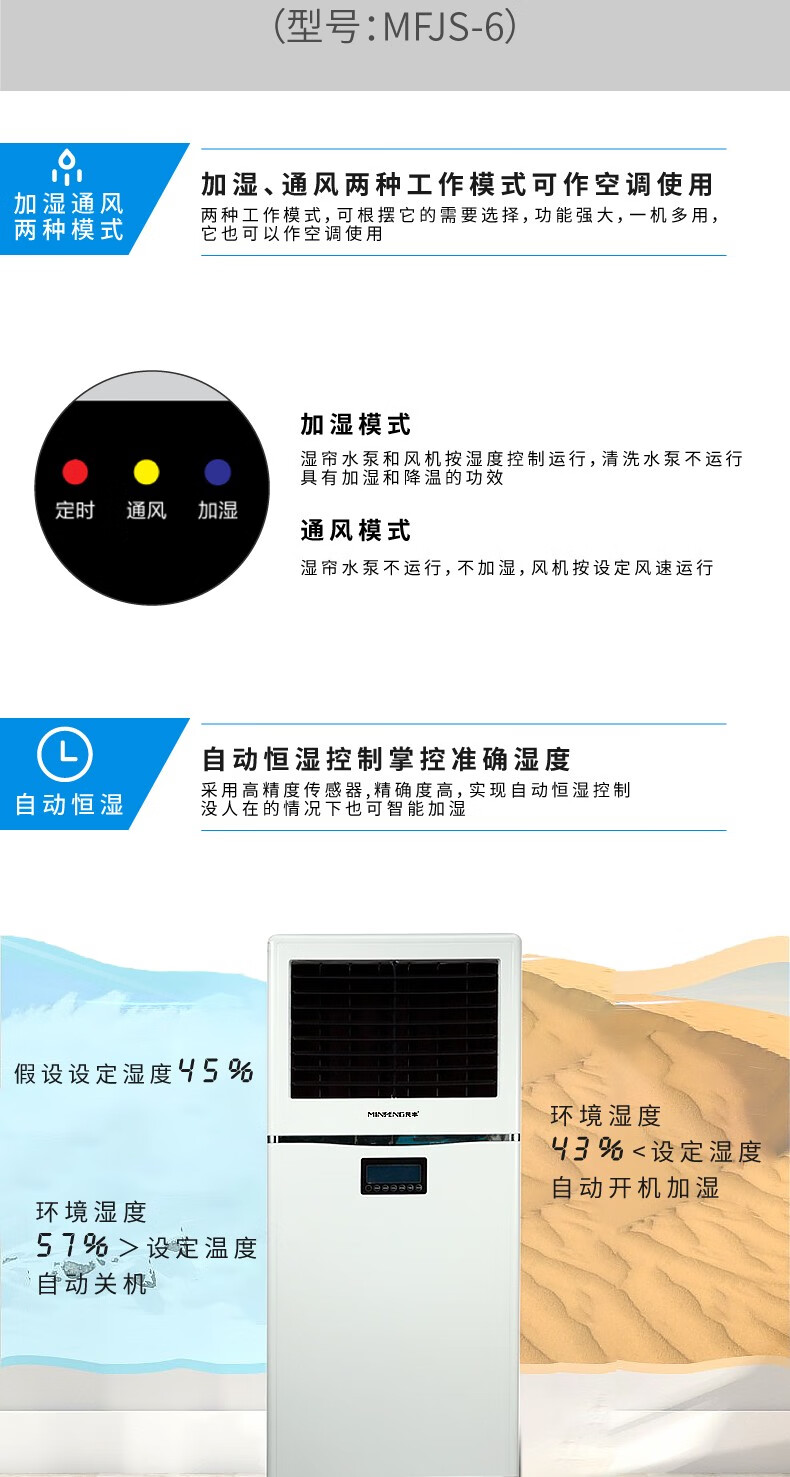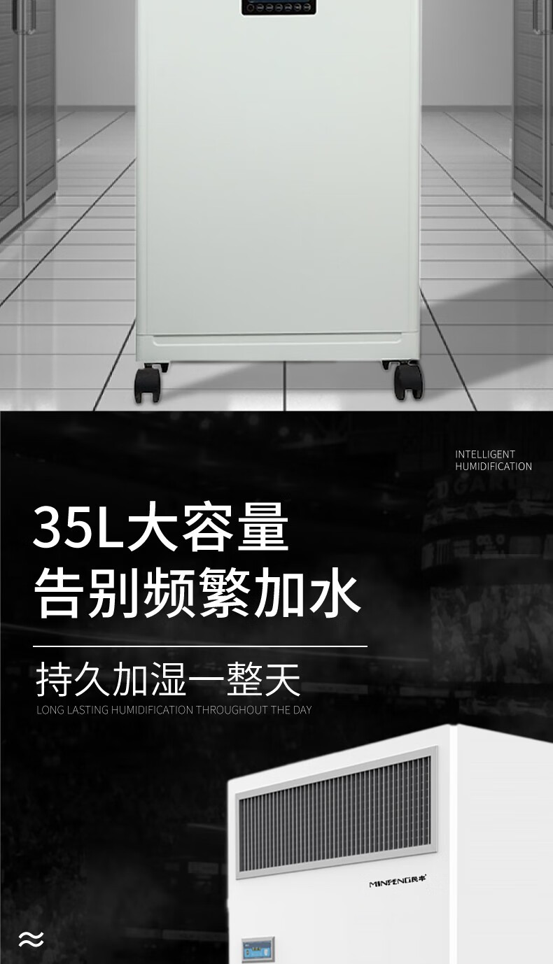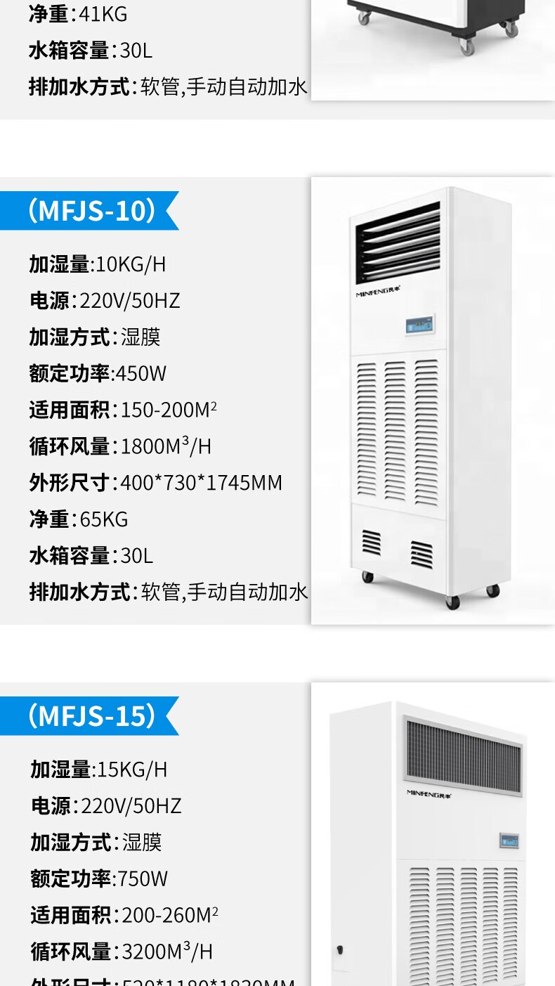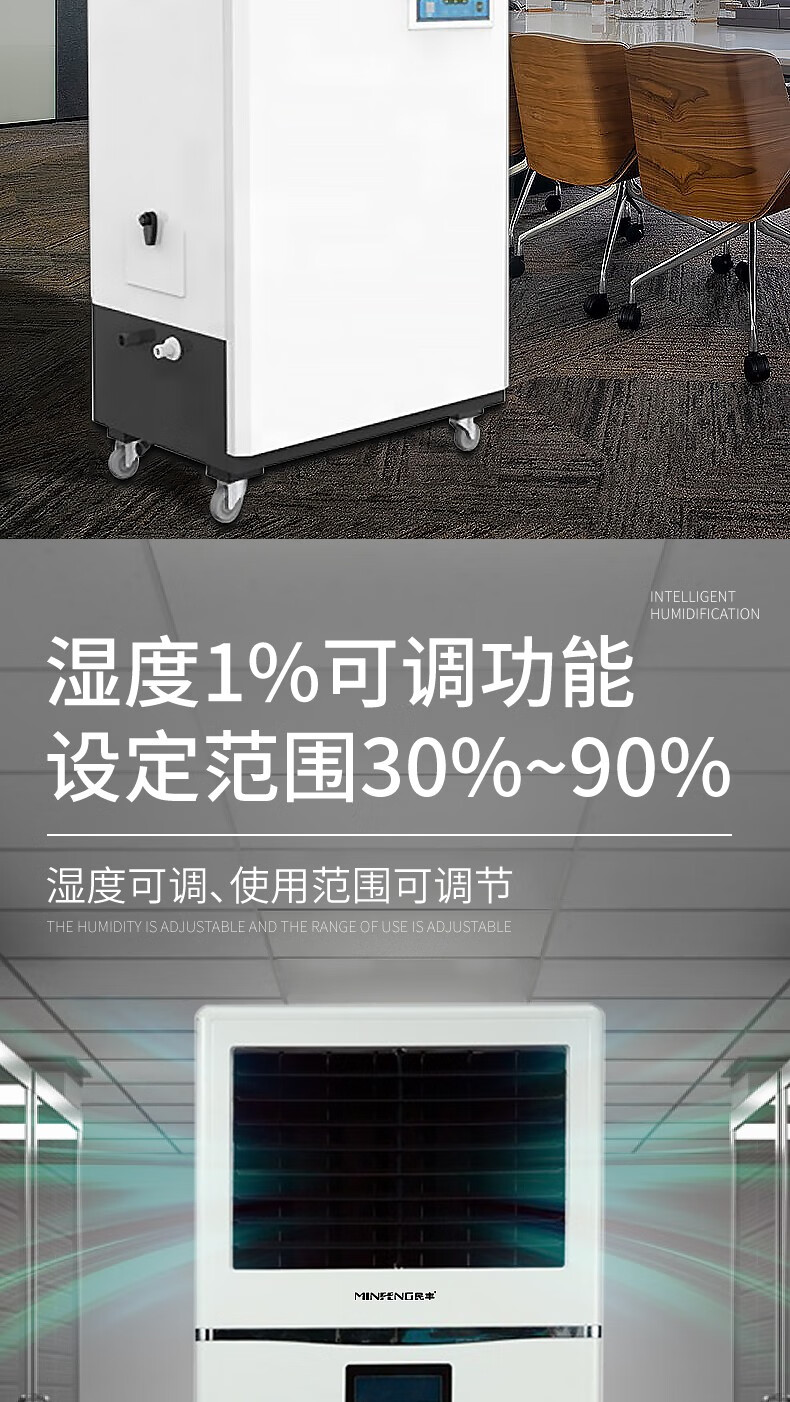 民丰15公斤湿膜加湿机家用办公室客厅落地式空气湿膜加湿器大容量无雾除静电实验室MFJS-15单位:台 白色