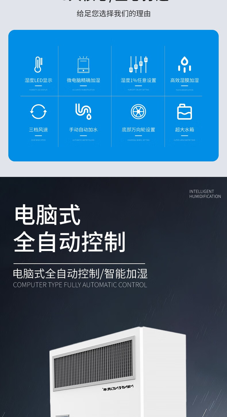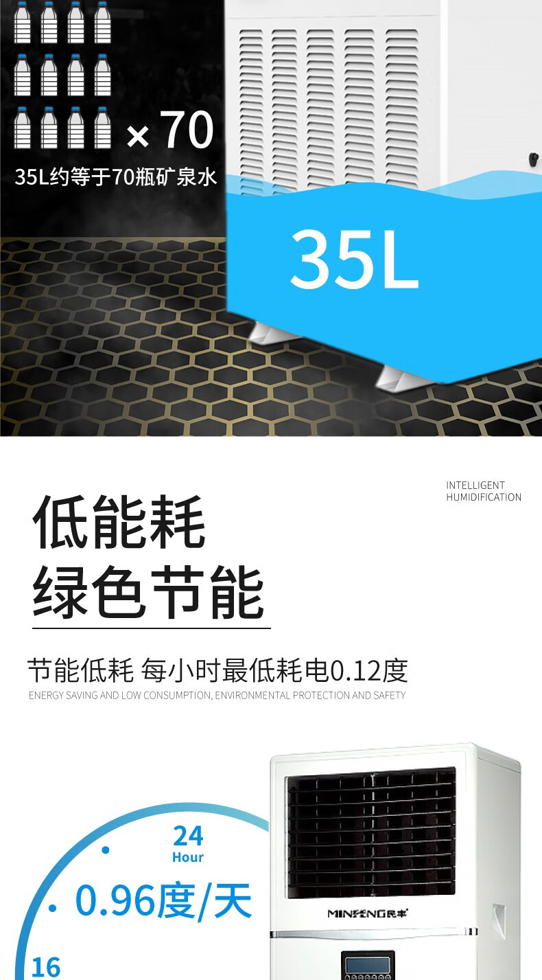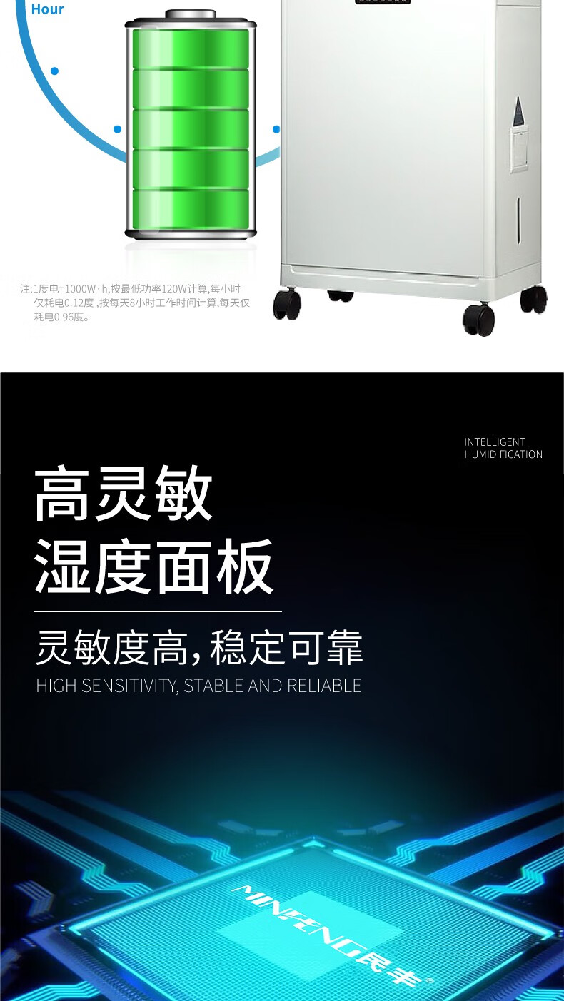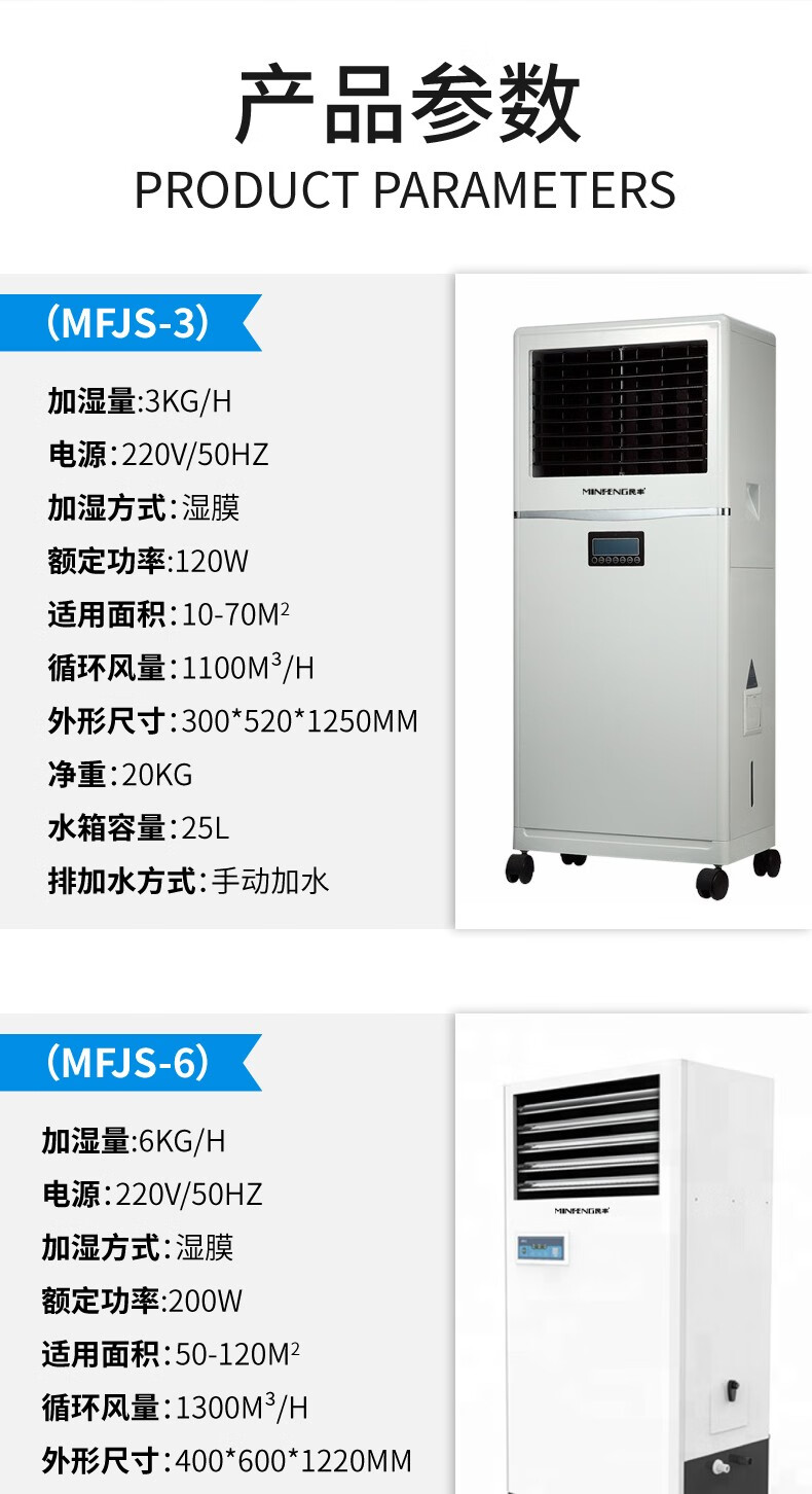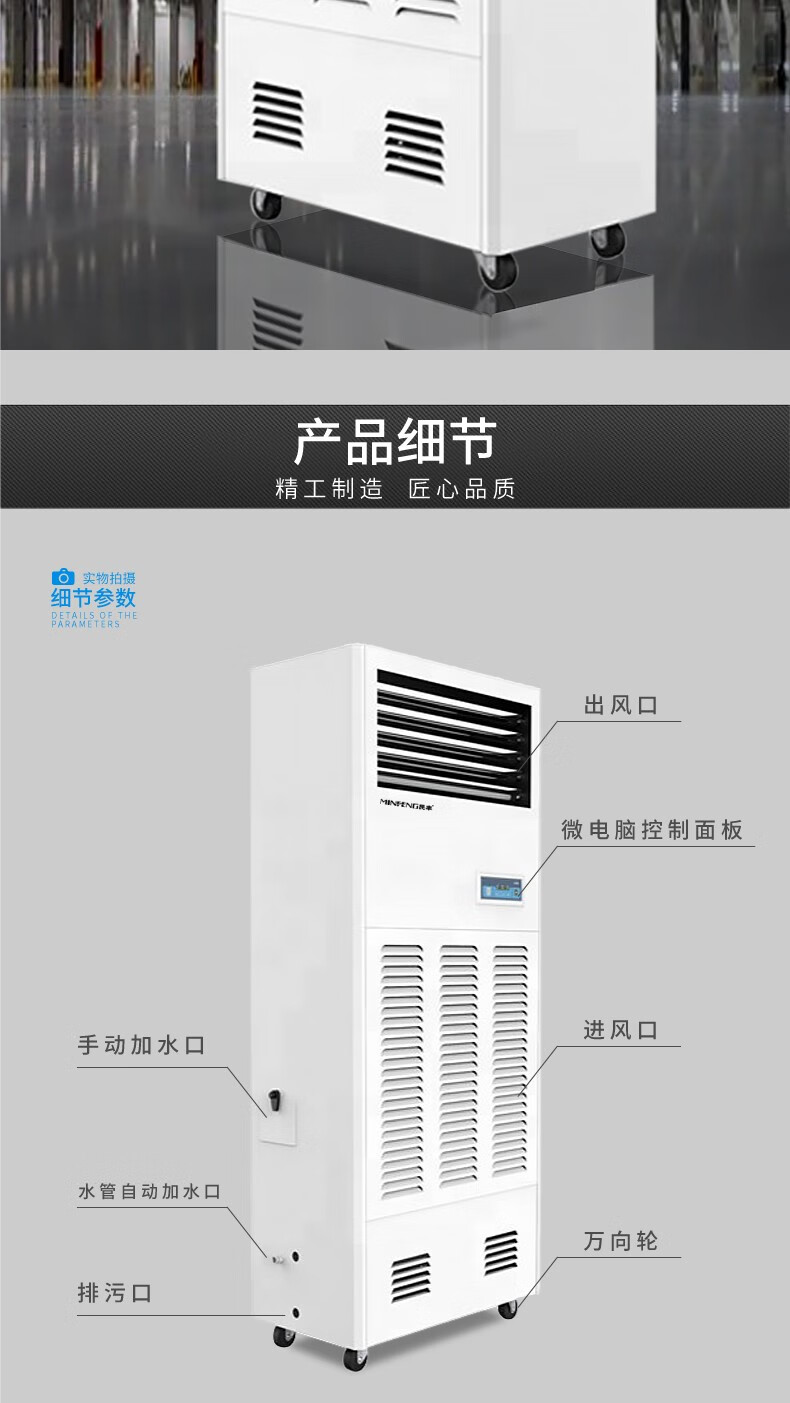 民丰15公斤湿膜加湿机家用办公室客厅落地式空气湿膜加湿器大容量无雾除静电实验室MFJS-15单位:台 白色