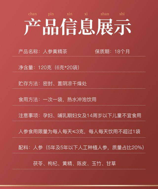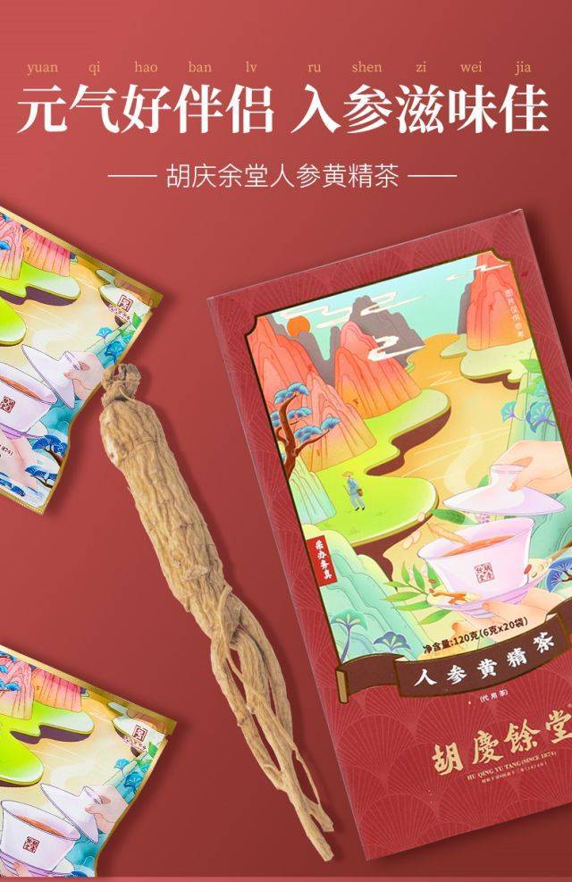 胡庆余堂人参黄精茶 6克*20袋*2盒 莓果色