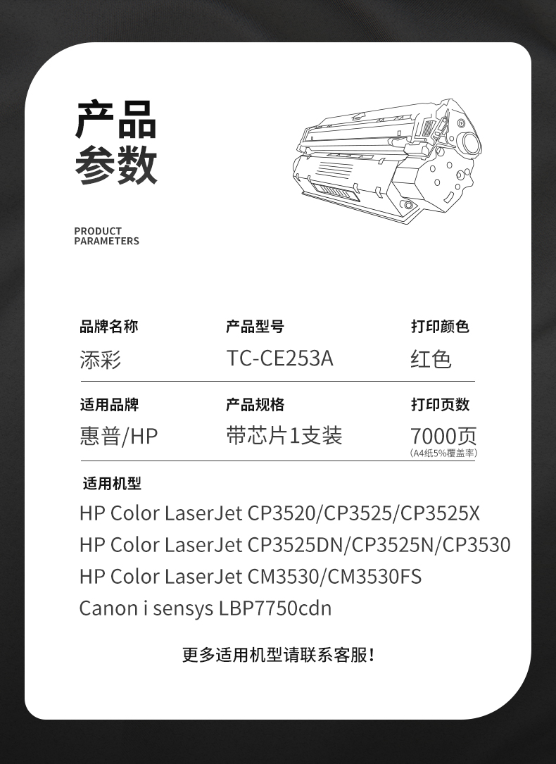 添彩TC-CE253A商用装适用HP CP3520/CP3525 打印量7000页 激光碳粉盒 支 红色