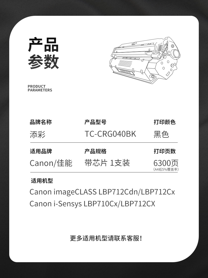 添彩TC-CRG040BK商用装适用佳能 LBP712Cdn/Cx打印量6300页 激光碳粉盒 支 黑色