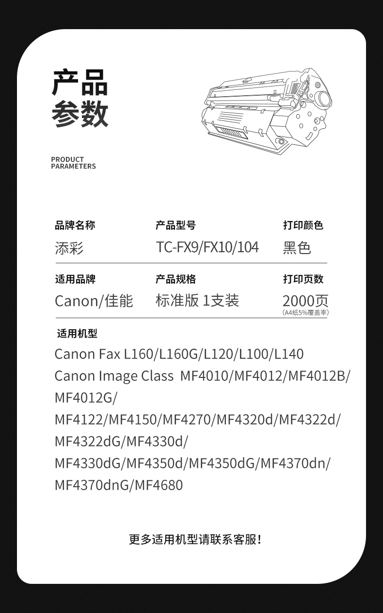 添彩TC-FX9/FX10/104商用装适用佳能L160/L160G打印量2000页 激光碳粉盒 支 黑色
